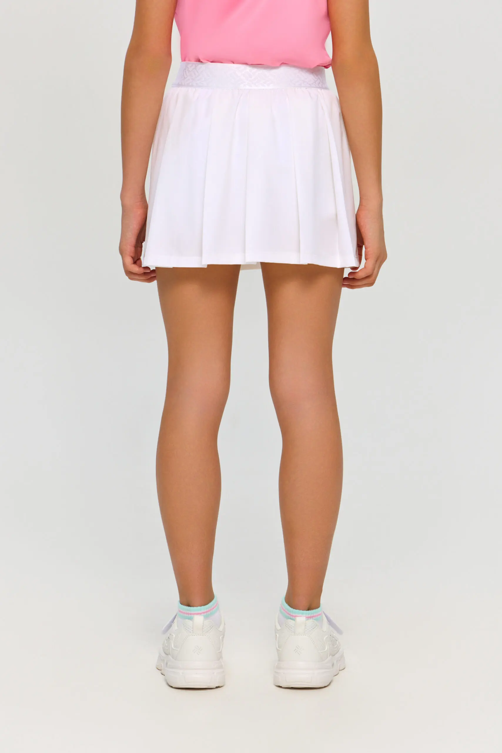 Белая спортивная юбка для девочки – превосходный выбор для игры в теннис. Благодаря продуманному дизайну модель не сковывает движений, позволяя ребенку свободно двигаться на корте. Удобная ... резинка на поясе гарантирует удобную фиксацию. Эта юбка идеально комбинируется с широким спектром спортивных топов и футболок, позволяя создавать уникальные и модные комплекты для каждой тренировки. Она без труда дополнит гардероб юной теннисистки. Модель изготовлена из тянущегося материала с применением технологии влагоотведения CH Dry