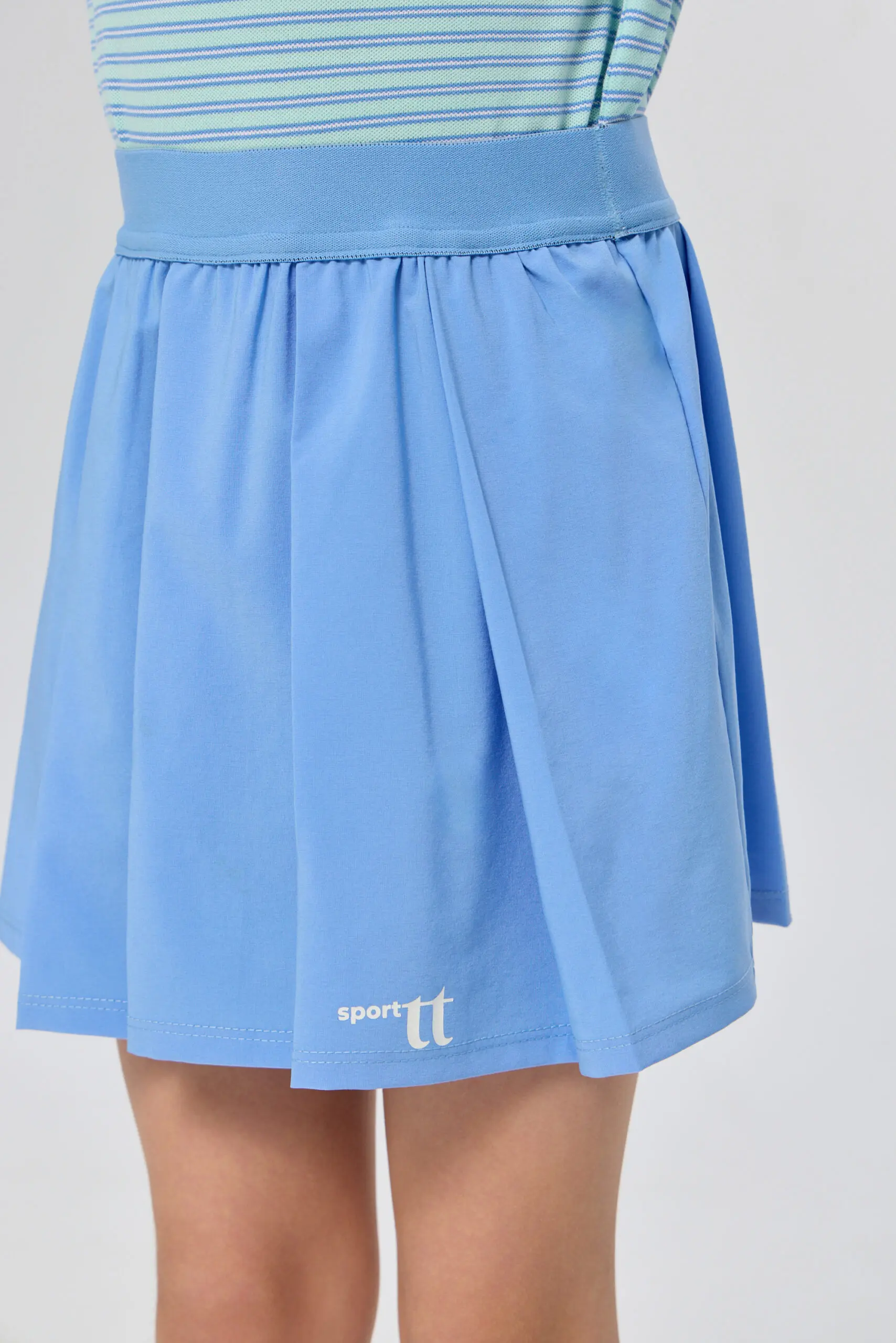 Эта спортивная юбка-шорты небесного оттенка станет отличным решением для юной теннисистки. Тщательно разработанный крой обеспечивает полную свободу движений во время игры. Эластичный пояс гарантирует надежную и ... комфортную посадку. Универсальный дизайн позволяет легко сочетать юбку-шорты с разнообразными футболками и топами, создавая стильные образы для каждой тренировки. Она станет прекрасным дополнением к спортивному гардеробу. Изделие выполнено из эластичной ткани с использованием технологии CH Dry, обеспечивающей отвод влаги.