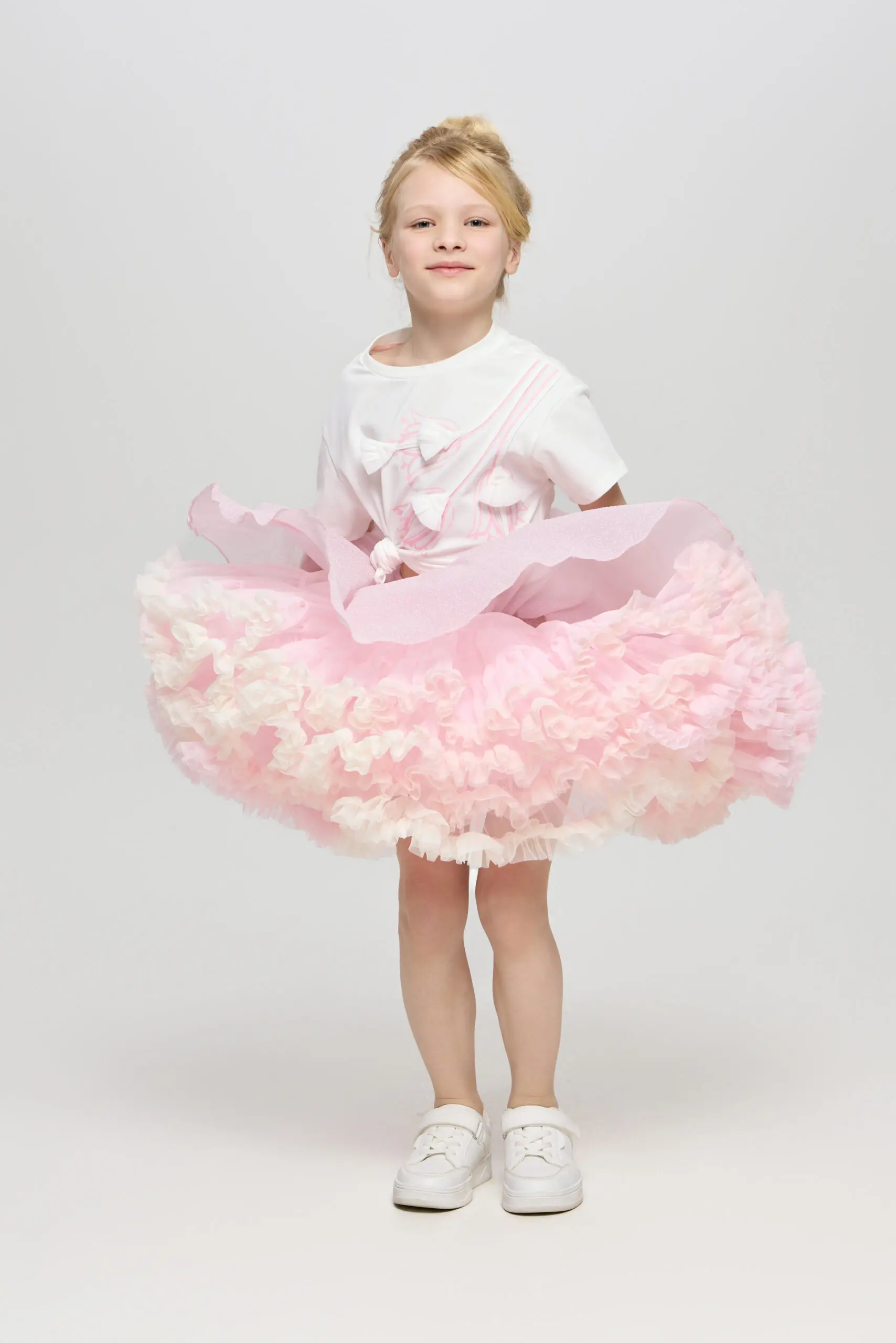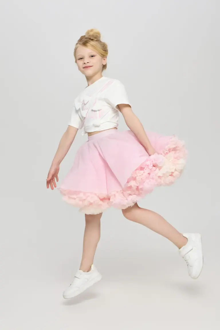 Юбка объёмная в розовом цвете — это яркий и эффектный элемент гардероба девочки. Модель идеально подходит для особых случаев, таких как праздники или вечеринки.