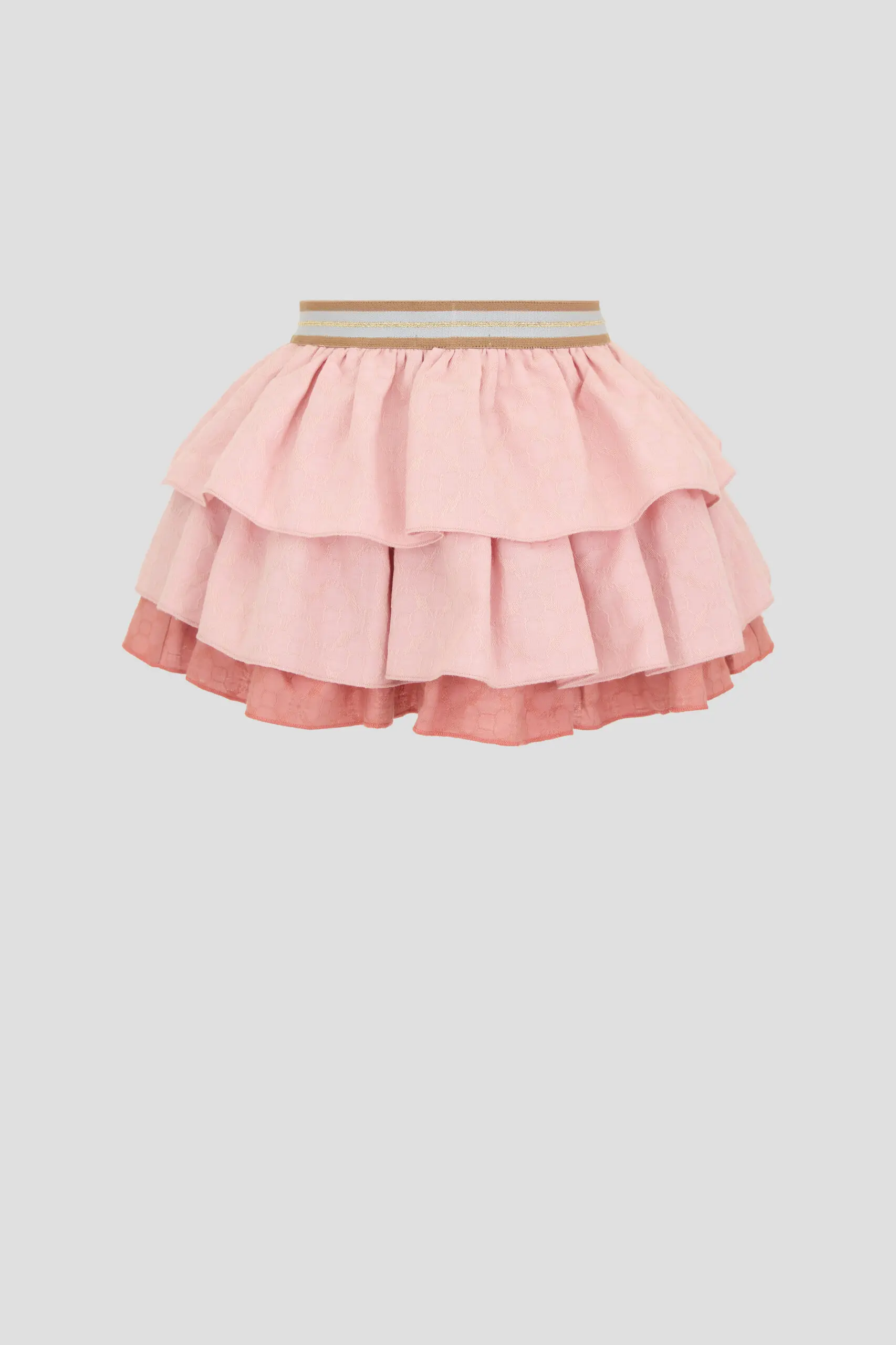 Пышная многоярусная юбка изготовлена из приятной к телу ткани красивого розового оттенка. Воланы, украшенные фактурным узором в тон ткани, образуют очаровательный воздушный силуэт. Юбка на эластичном ... поясе, благодаря которому можно подобрать удобную для девочки посадку. Ткань из 100% хлопка гарантирует ребенку комфорт. Материал славится высокими гигиеническими свойствами и способностью пропускать воздух.