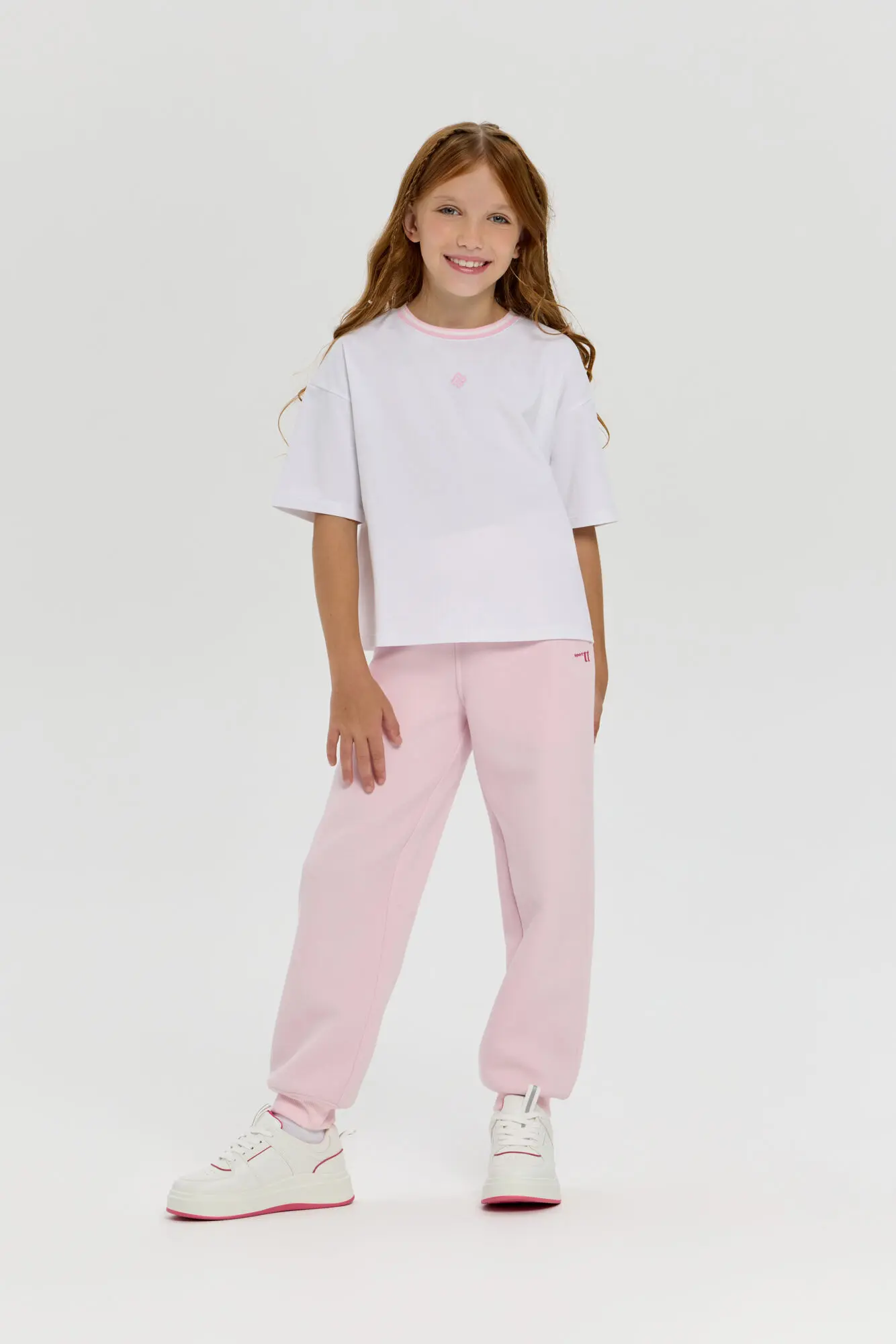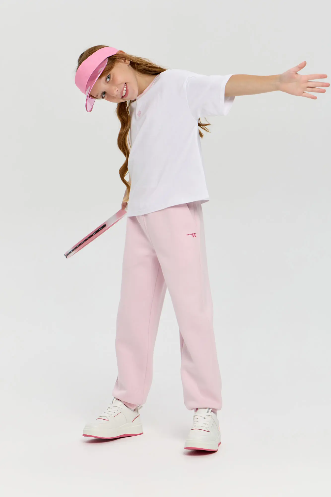 Cтильные спортивные брюки из неопрена в розовом цвете для девочки. Неопреновый материал удерживает тепло и держит форму, создавая удобство даже во время активных тренировок. Эластичный пояс ... на кулиске даёт возможность корректировать посадку, а практичные боковые карманы позволяют носить с собой телефон, ключи или небольшие аксессуары. Стильный минималистичный дизайн делает эту модель многофункциональной: брюки легко сочетаются с толстовками или с обычными футболками. Подходят как для занятий спортом, так и для создания ежедневного образа.