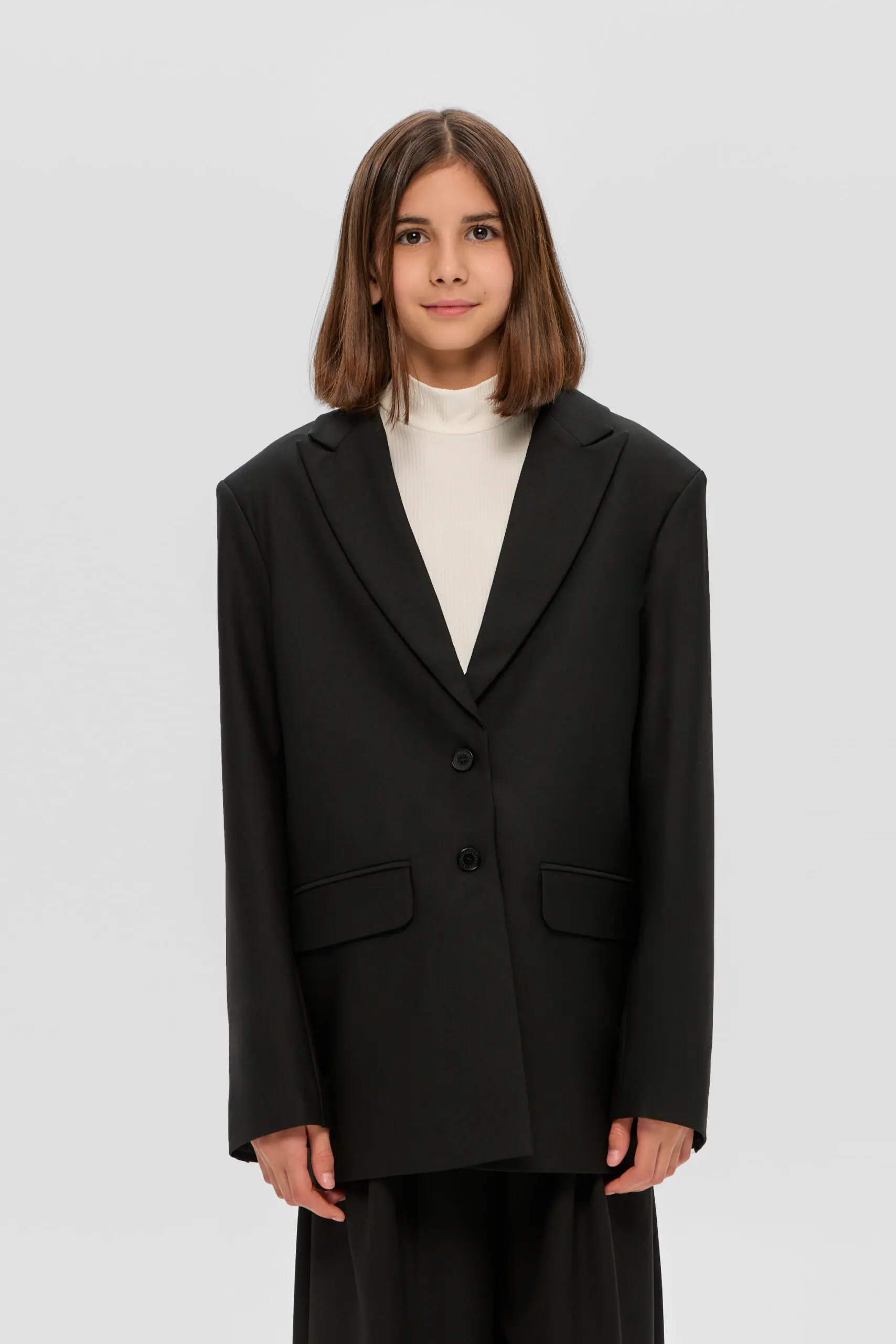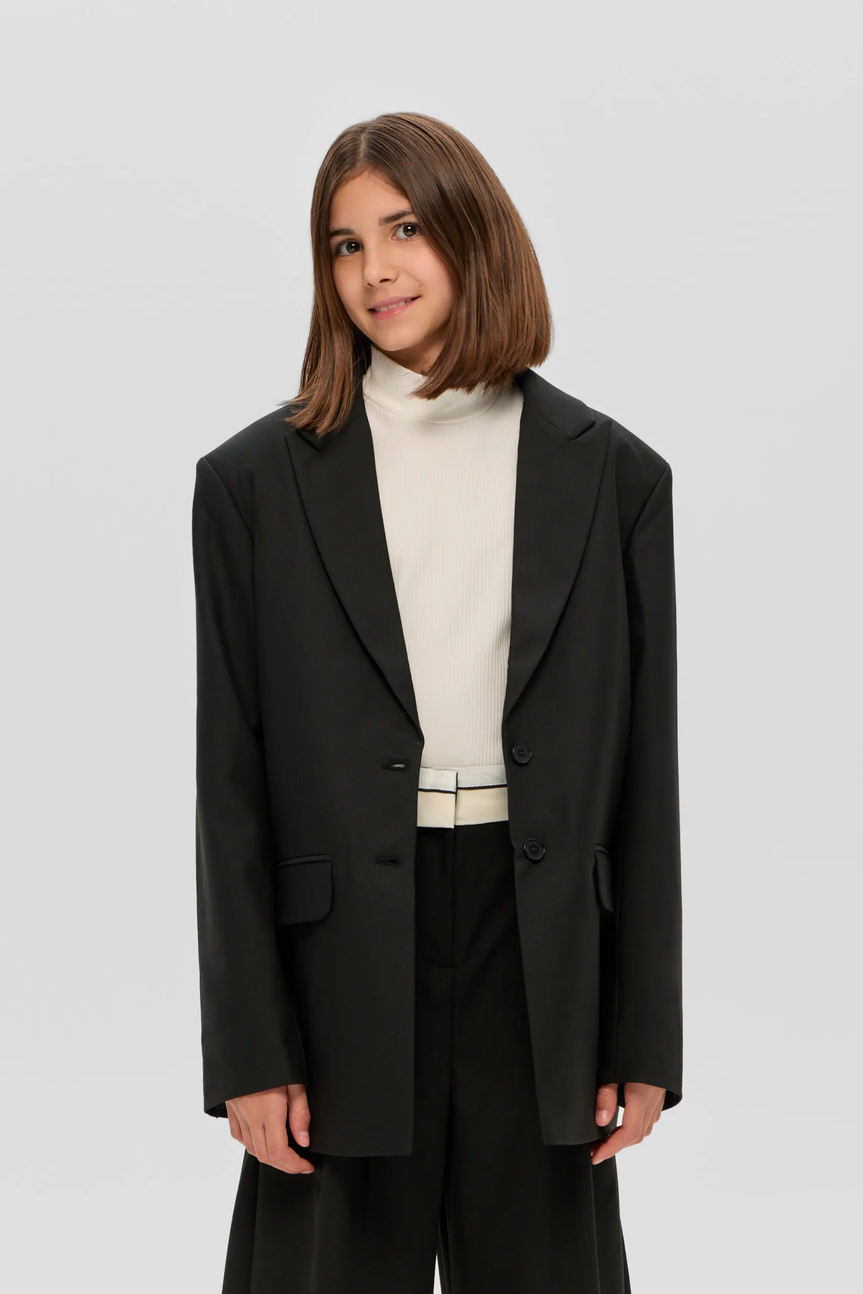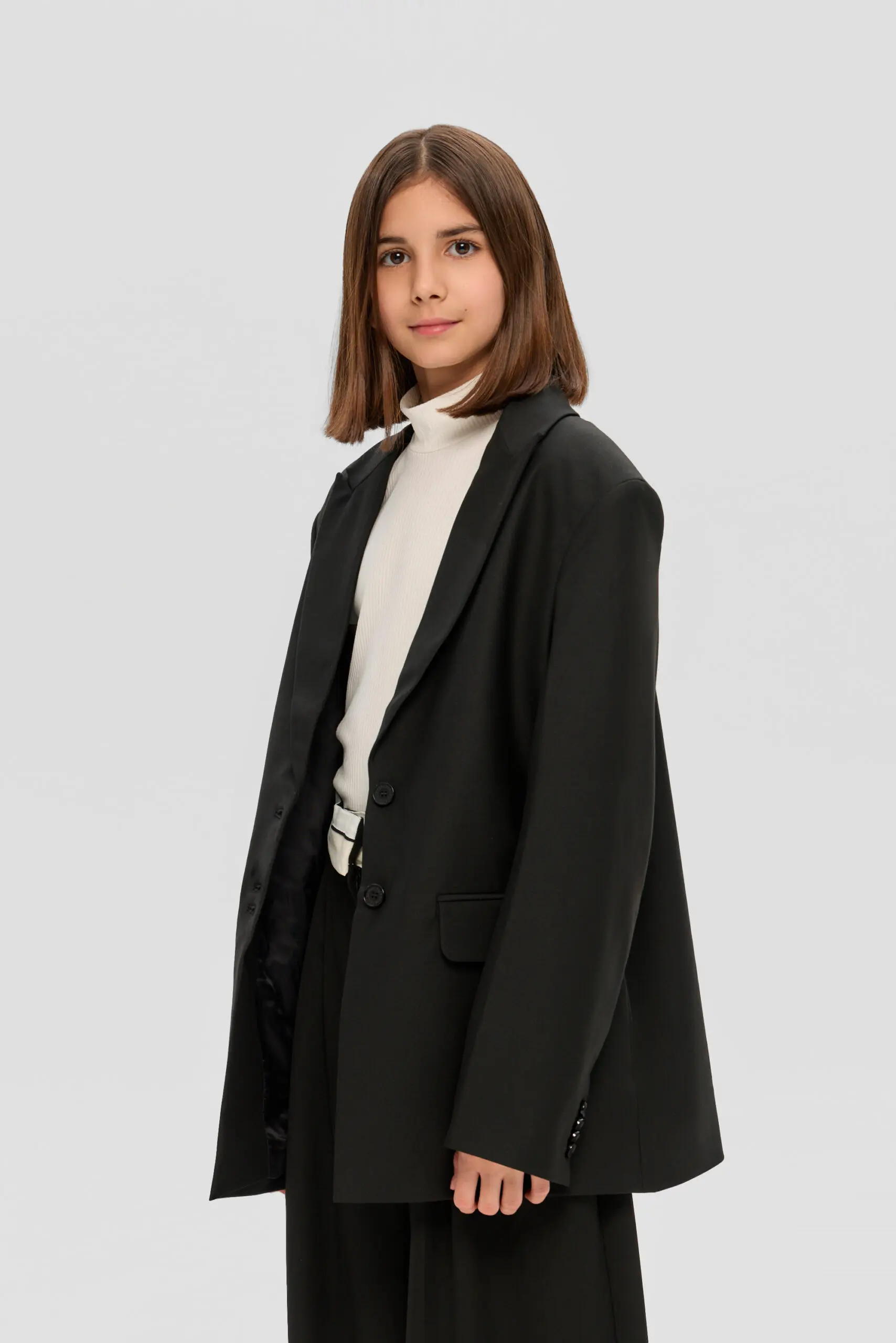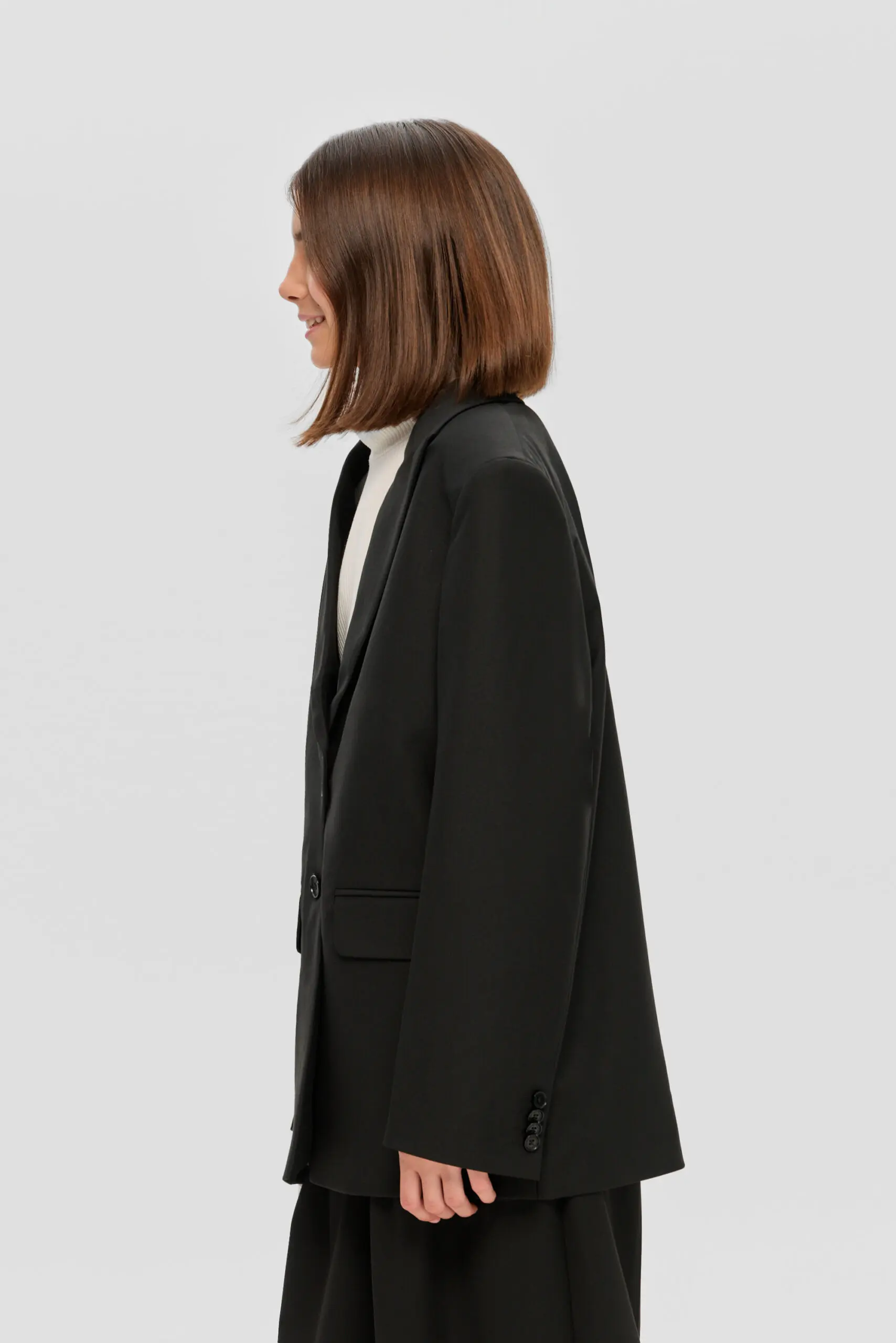 Черный пиджак ... свободного кроя с подкладом из вискозы можно надевать поверх любой сорочки, лонгслива или свитшота, создавая нарядные и повседневные образы.