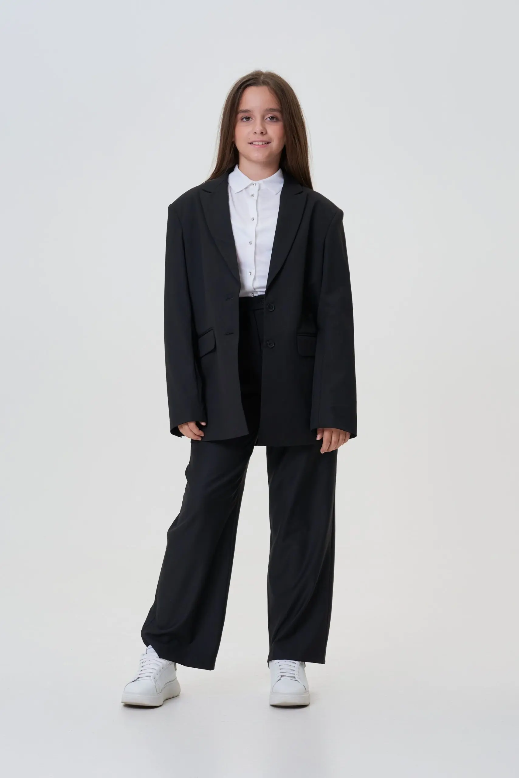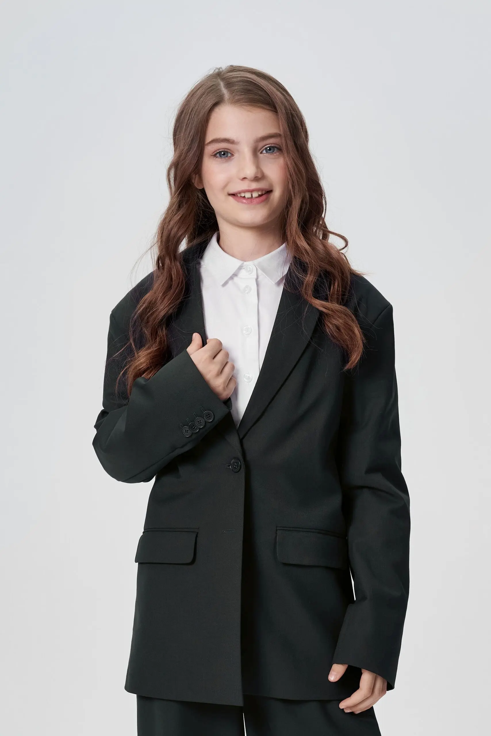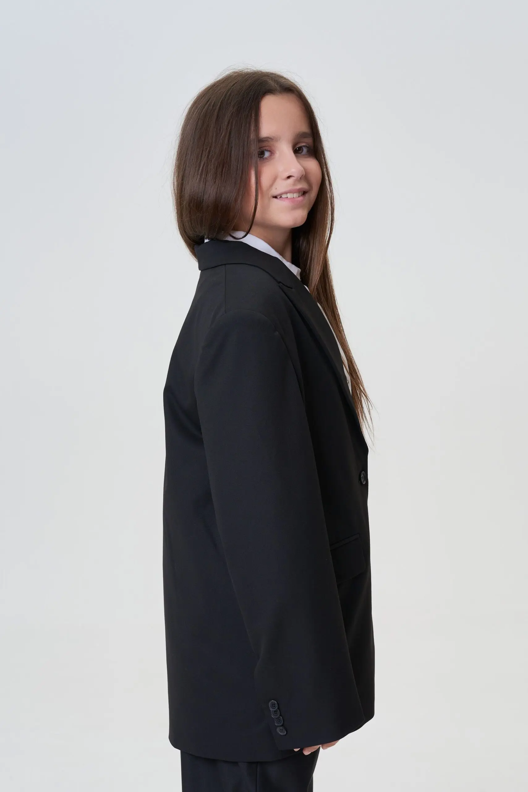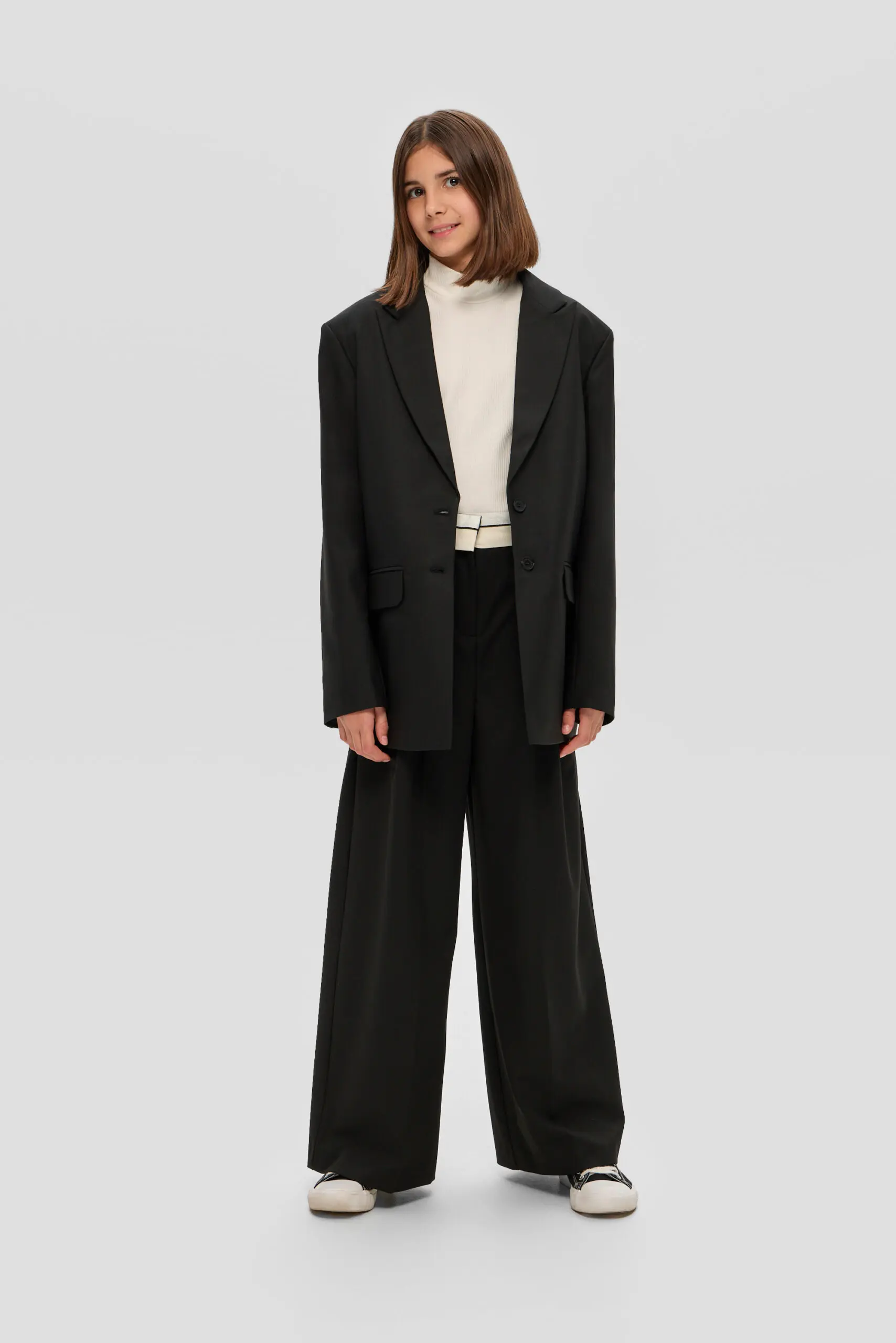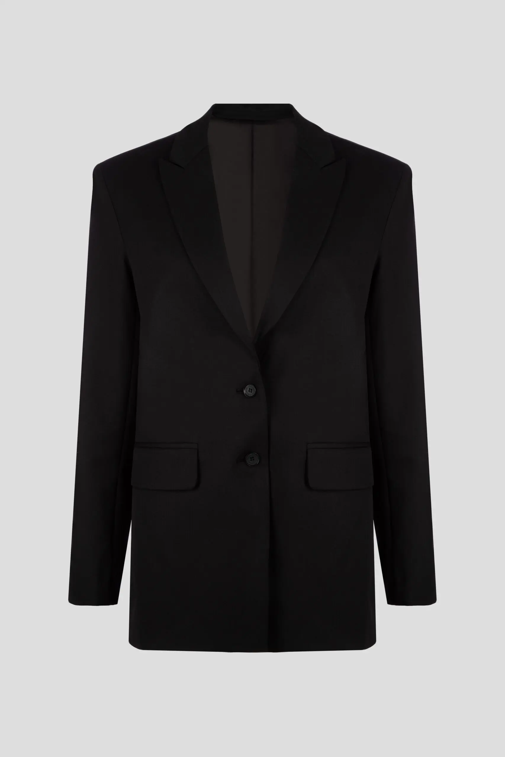 Черный пиджак ... свободного кроя с подкладом из вискозы можно надевать поверх любой сорочки, лонгслива или свитшота, создавая нарядные и повседневные образы.