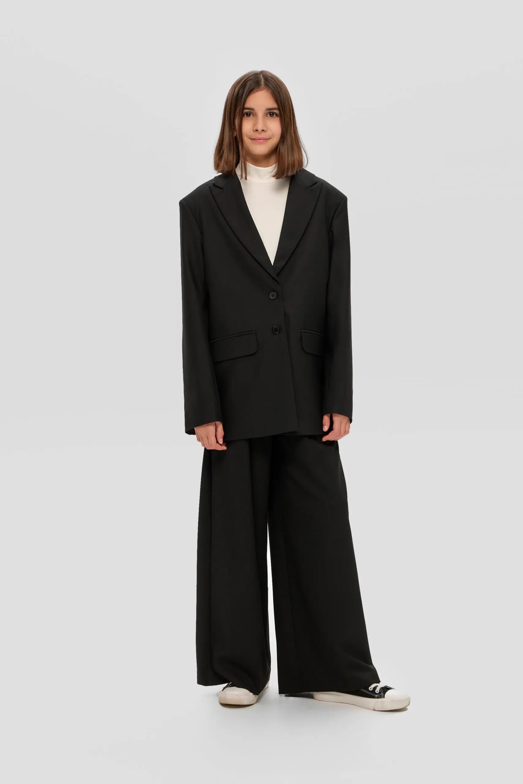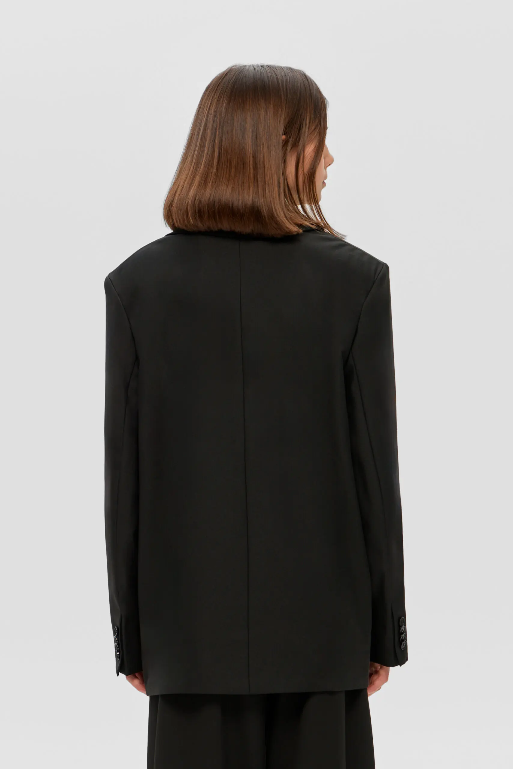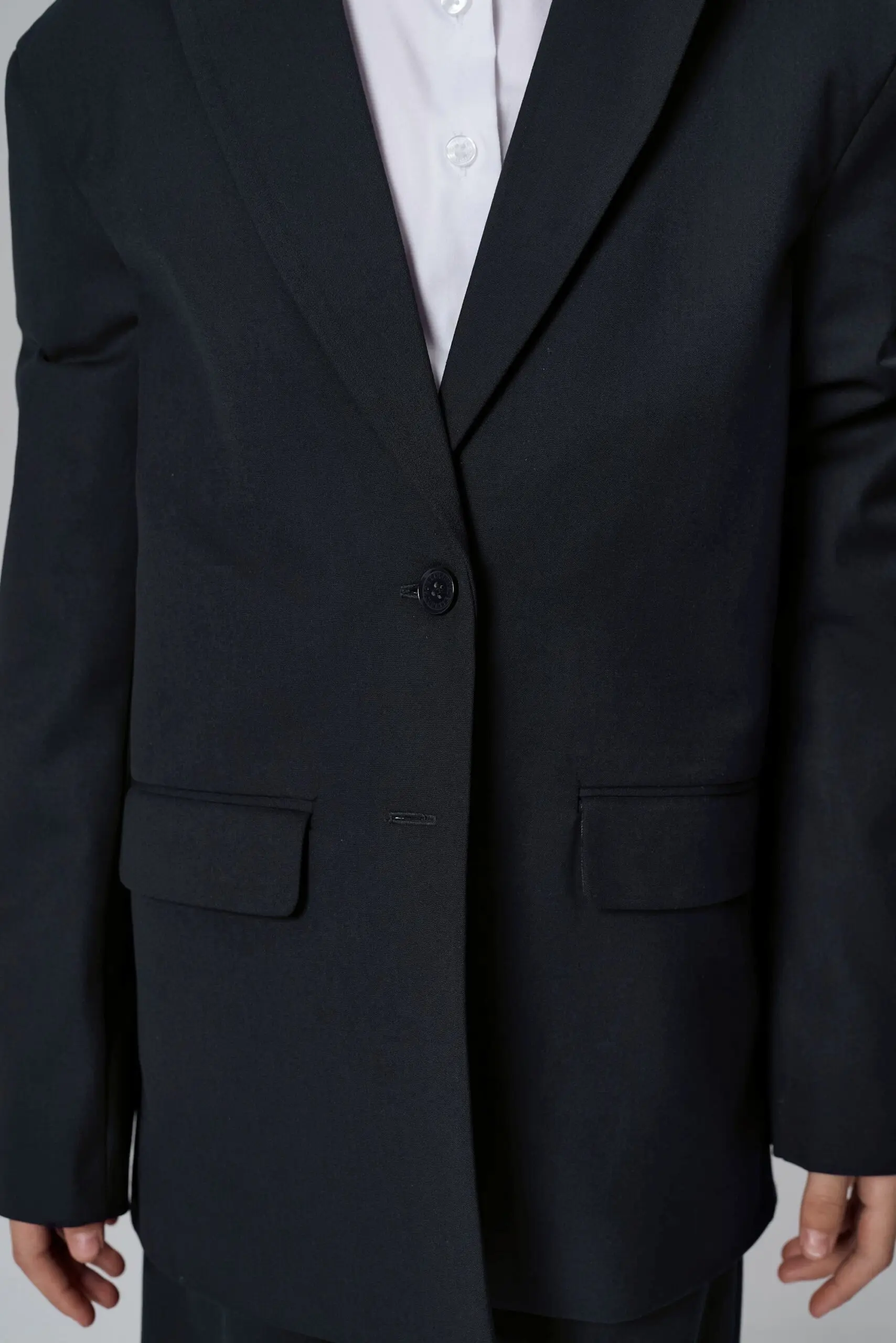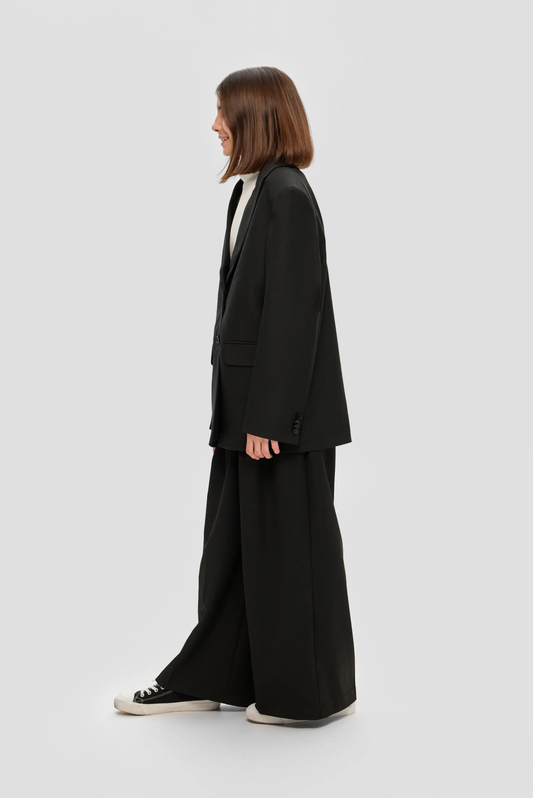 Черный пиджак ... свободного кроя с подкладом из вискозы можно надевать поверх любой сорочки, лонгслива или свитшота, создавая нарядные и повседневные образы.