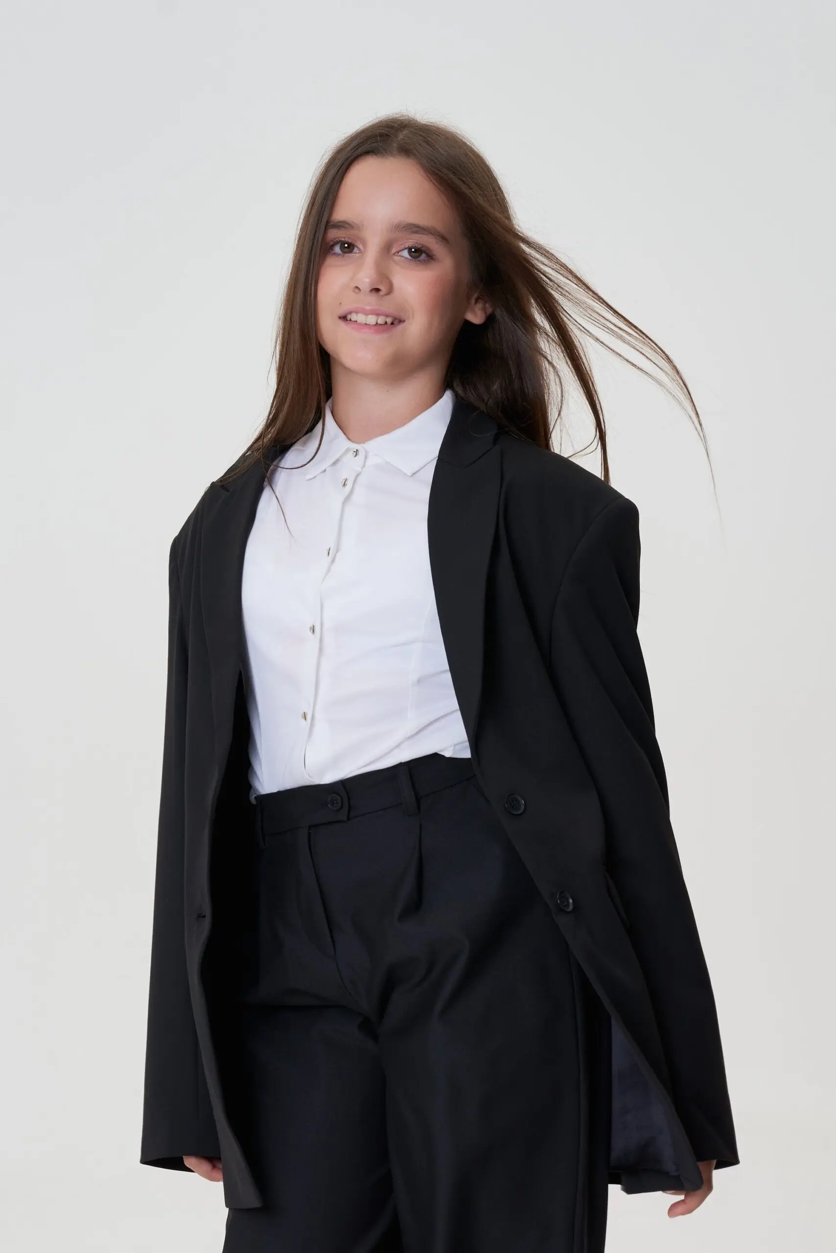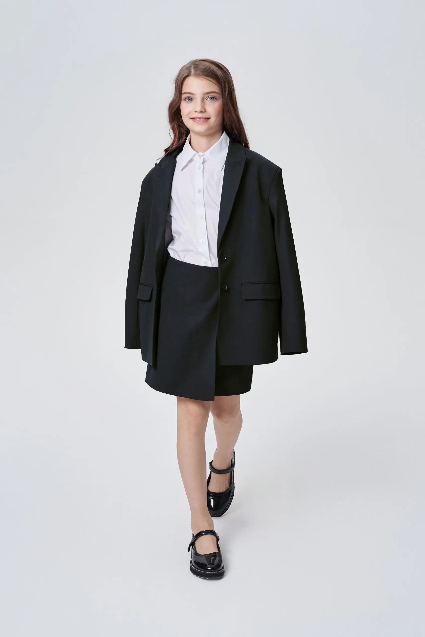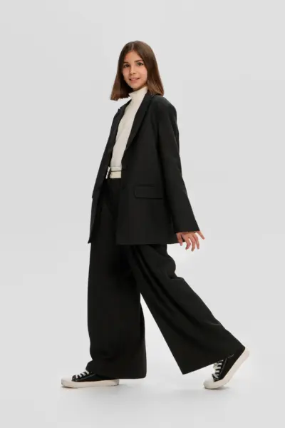 Великолепная модель для девочки-подростка из красивой костюмной ткани идеально впишется в школьный ансамбль.