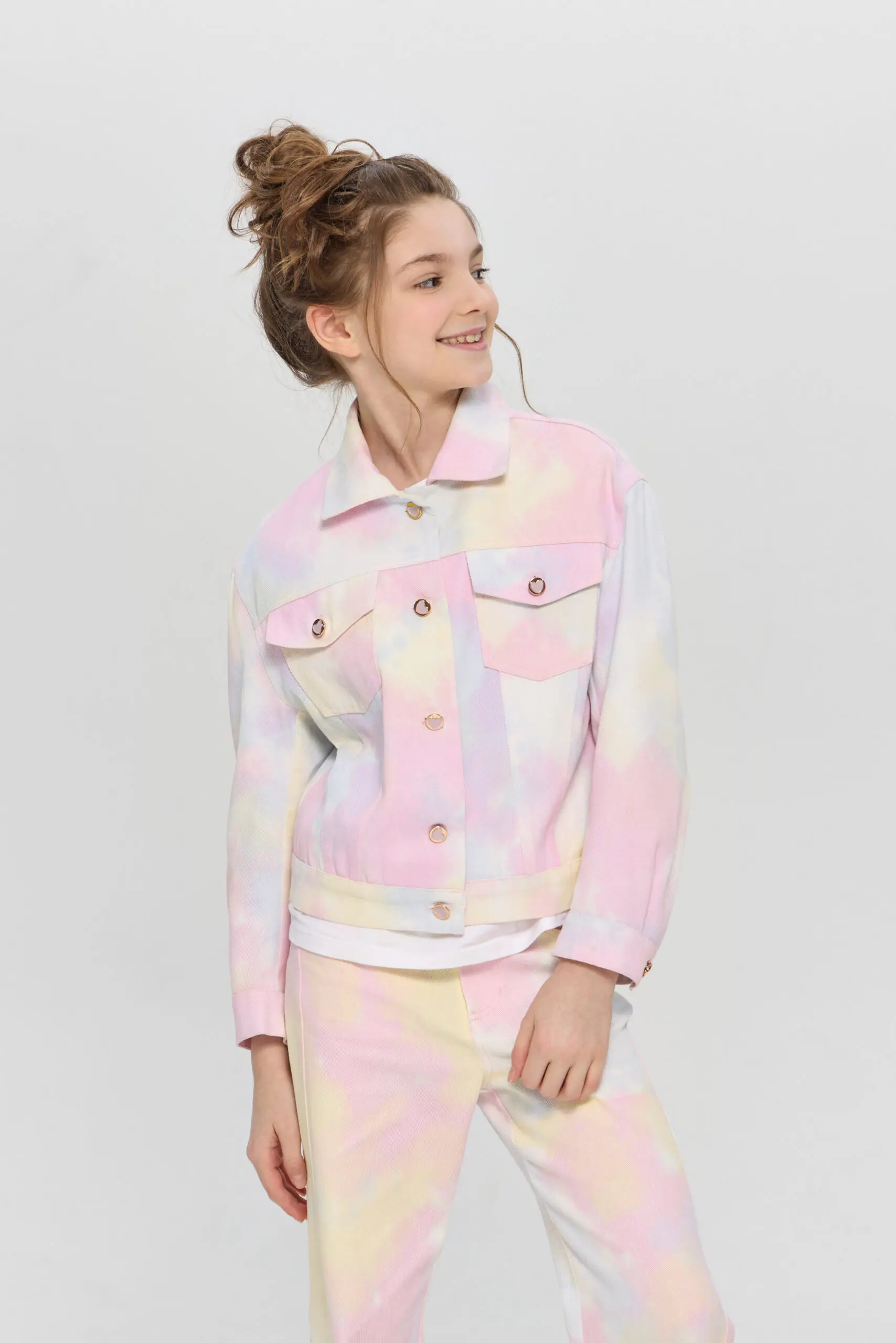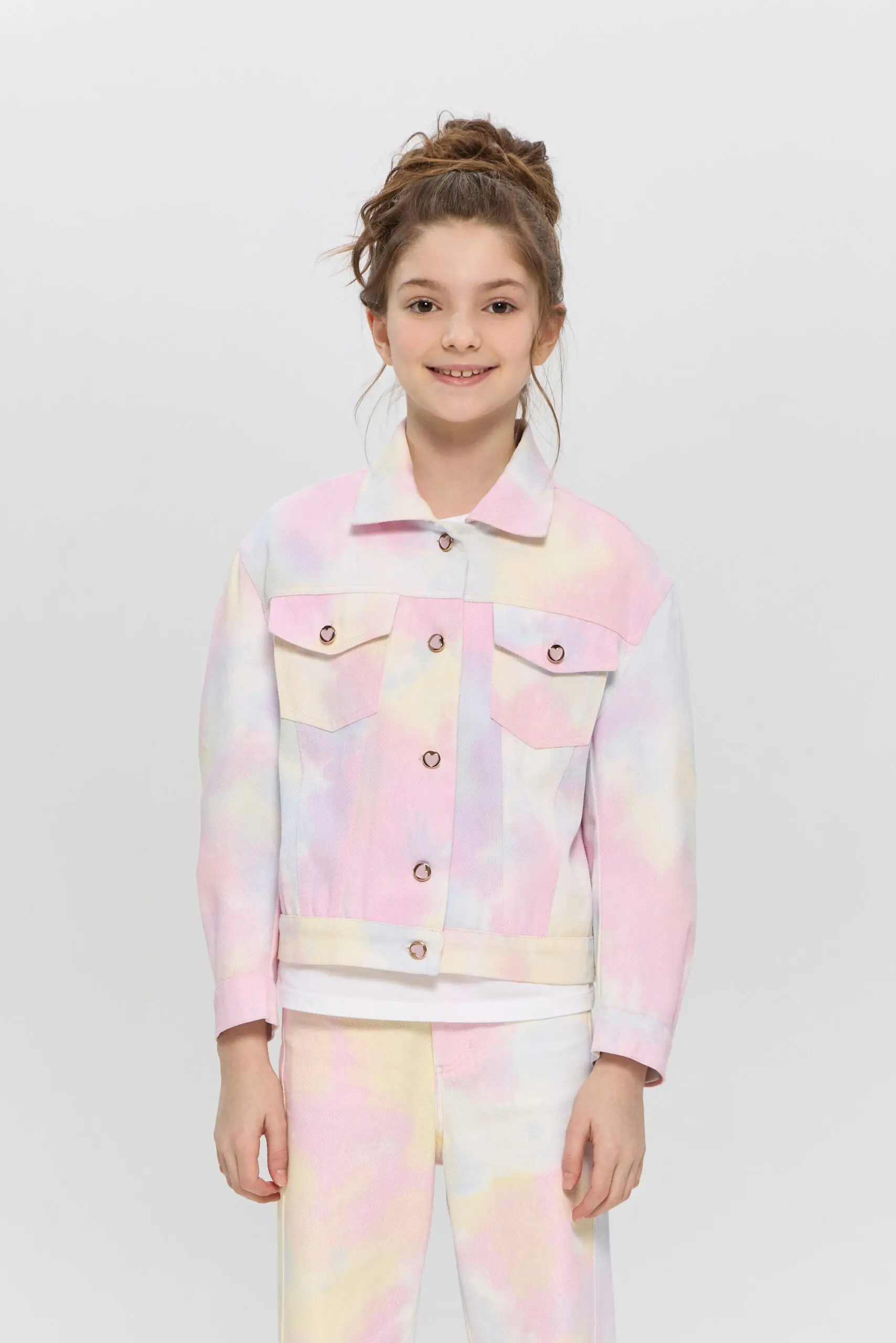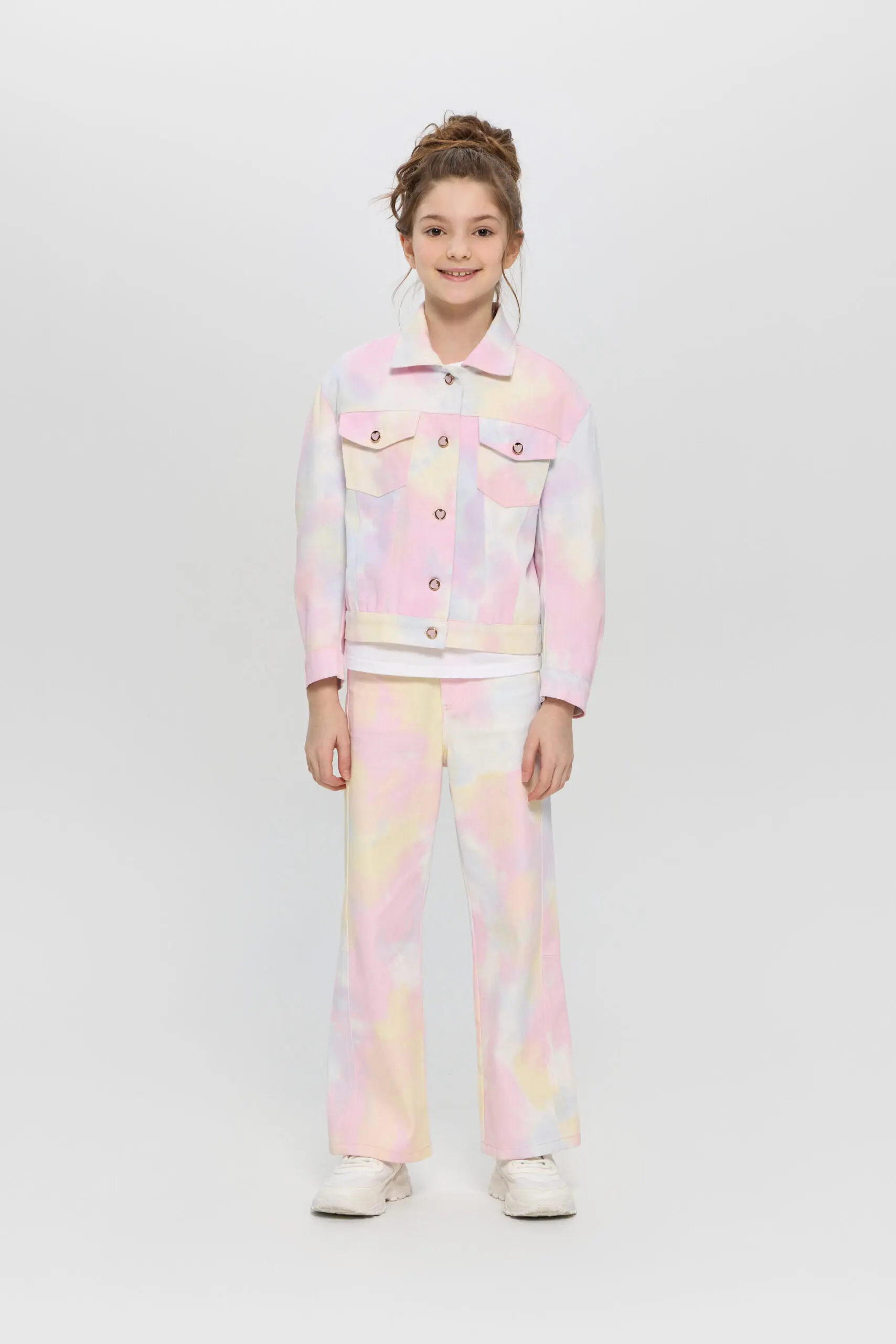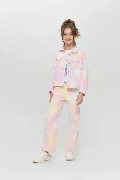 Жакет для девочки - отличный вариант для повседневного использования. Модель традиционного кроя выполнена из легкой джинсовой ткани. Яркий принт и дизайнерская фурнитура добавляет жакету уникальности. Этот ... жакет станет незаменимой вещью в гардеробе маленькой модницы. Его можно сочетать с однотонными платьями, юбками, джинсами и брюками, создавая разнообразные стильные образы. Удобство и модный внешний вид делают его отличным выбором для активных детей!