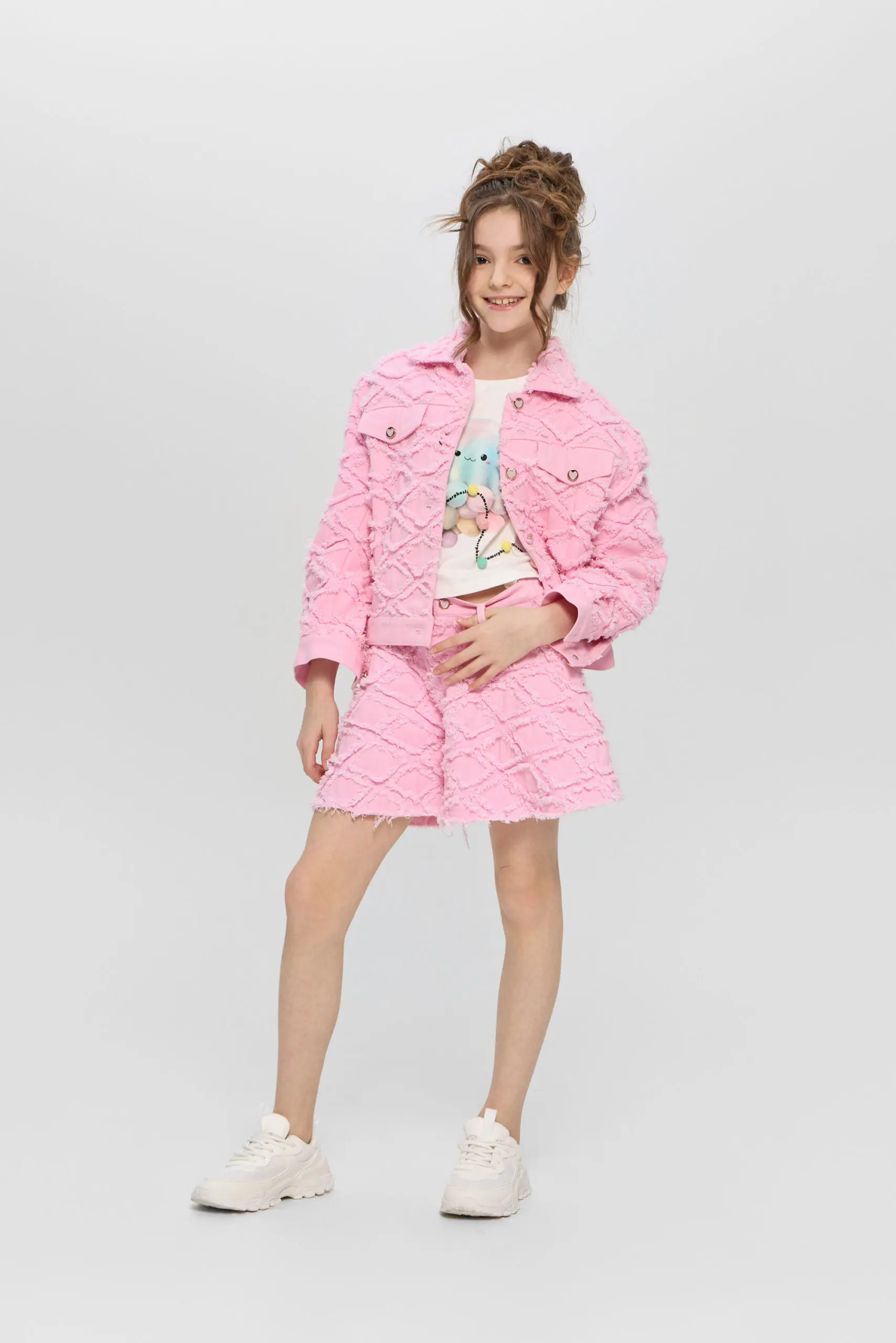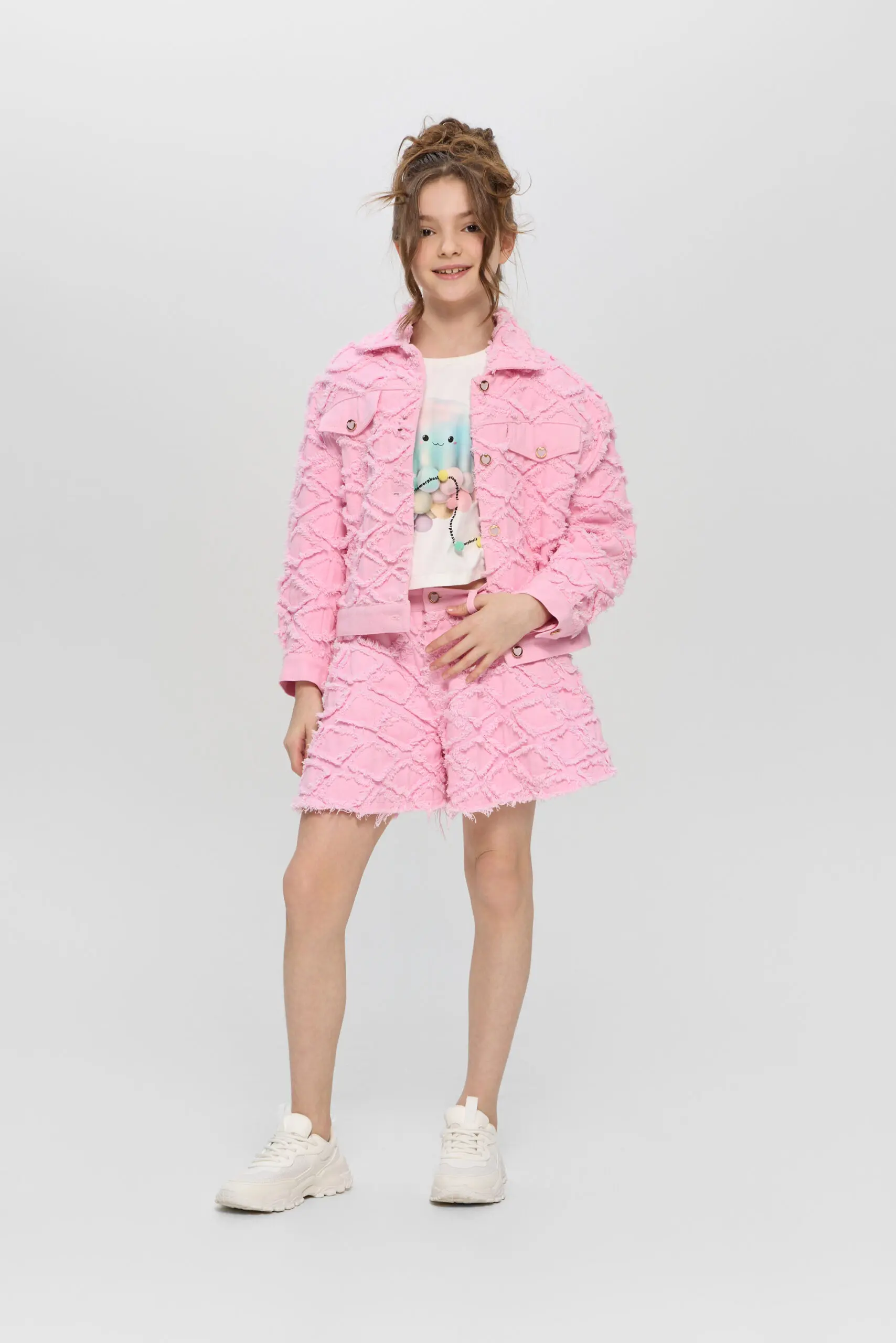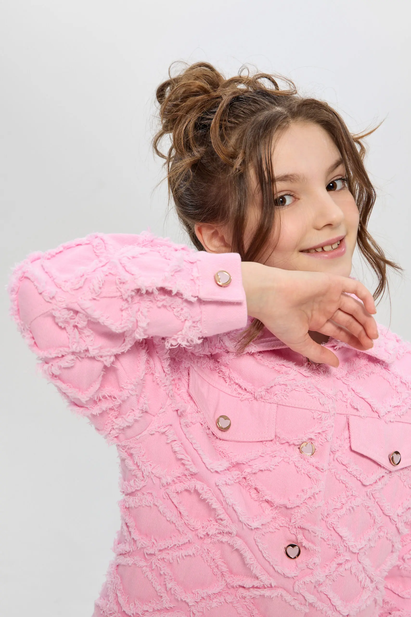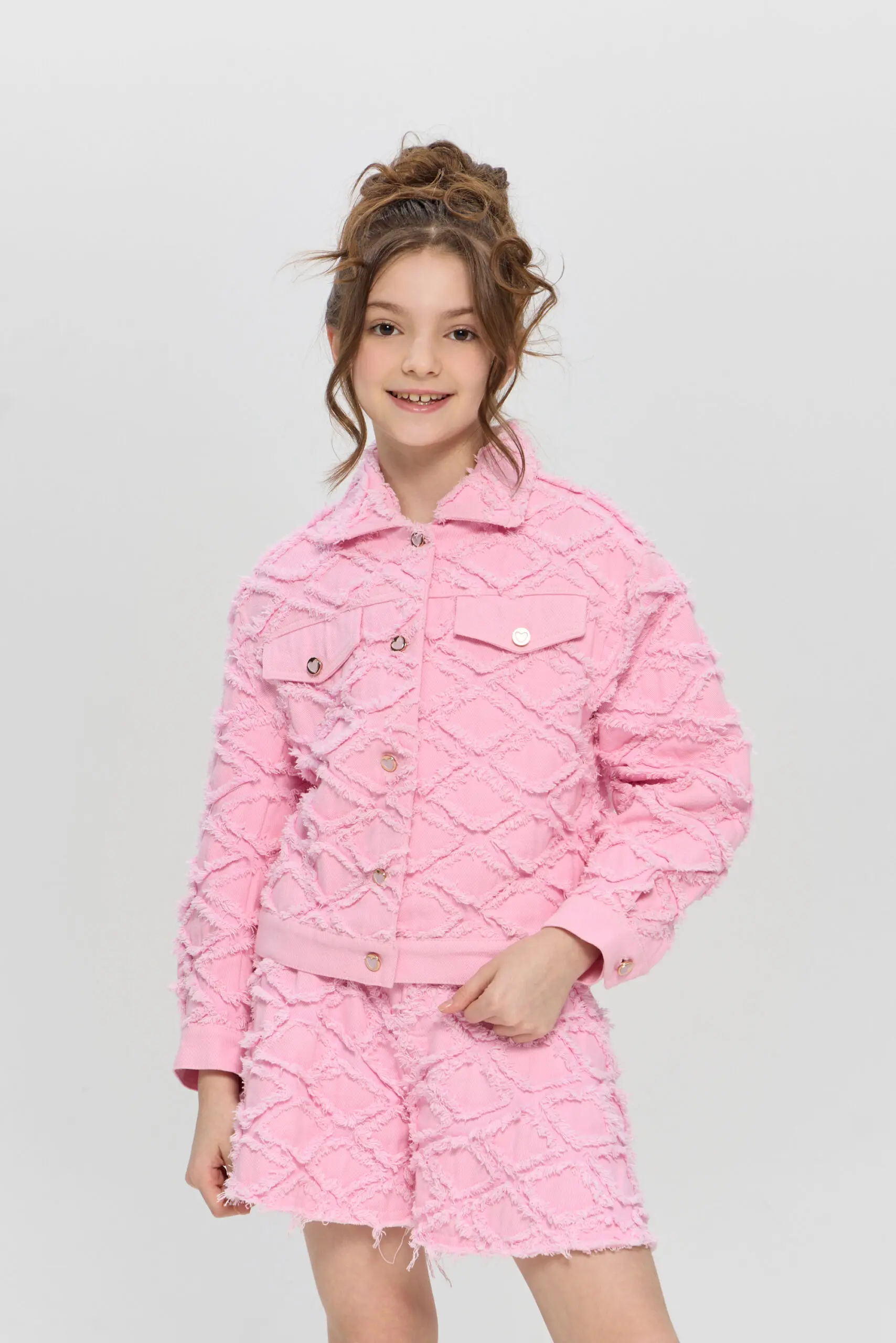 Жакет из джинсовой ткани для девочки — стильный и яркий элемент гардероба. Модель выполнена в свободном крое из фактурной ткани, воротник отложной. Украшают жакет удобная застежка ... на дизайнерские пуговицы и клапаны-обманки. Он идеально подходит для создания многослойных образов. Смело комбинируйте его с платьями, юбками или брюками для создания уникального стиля.