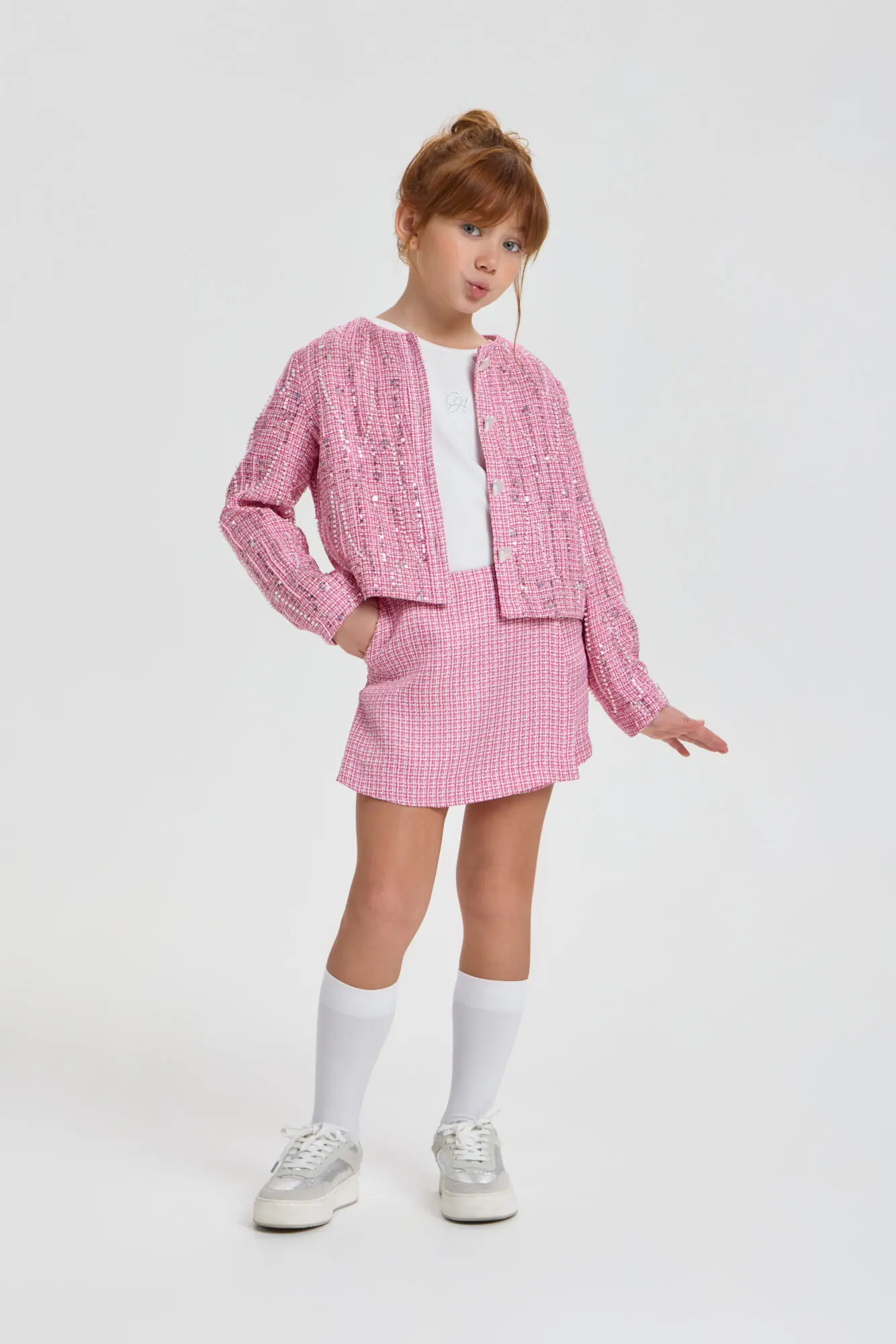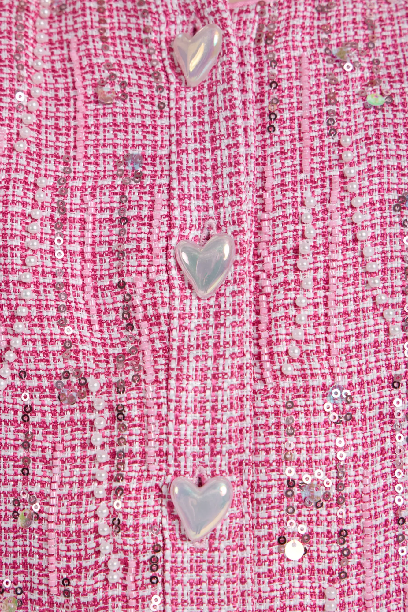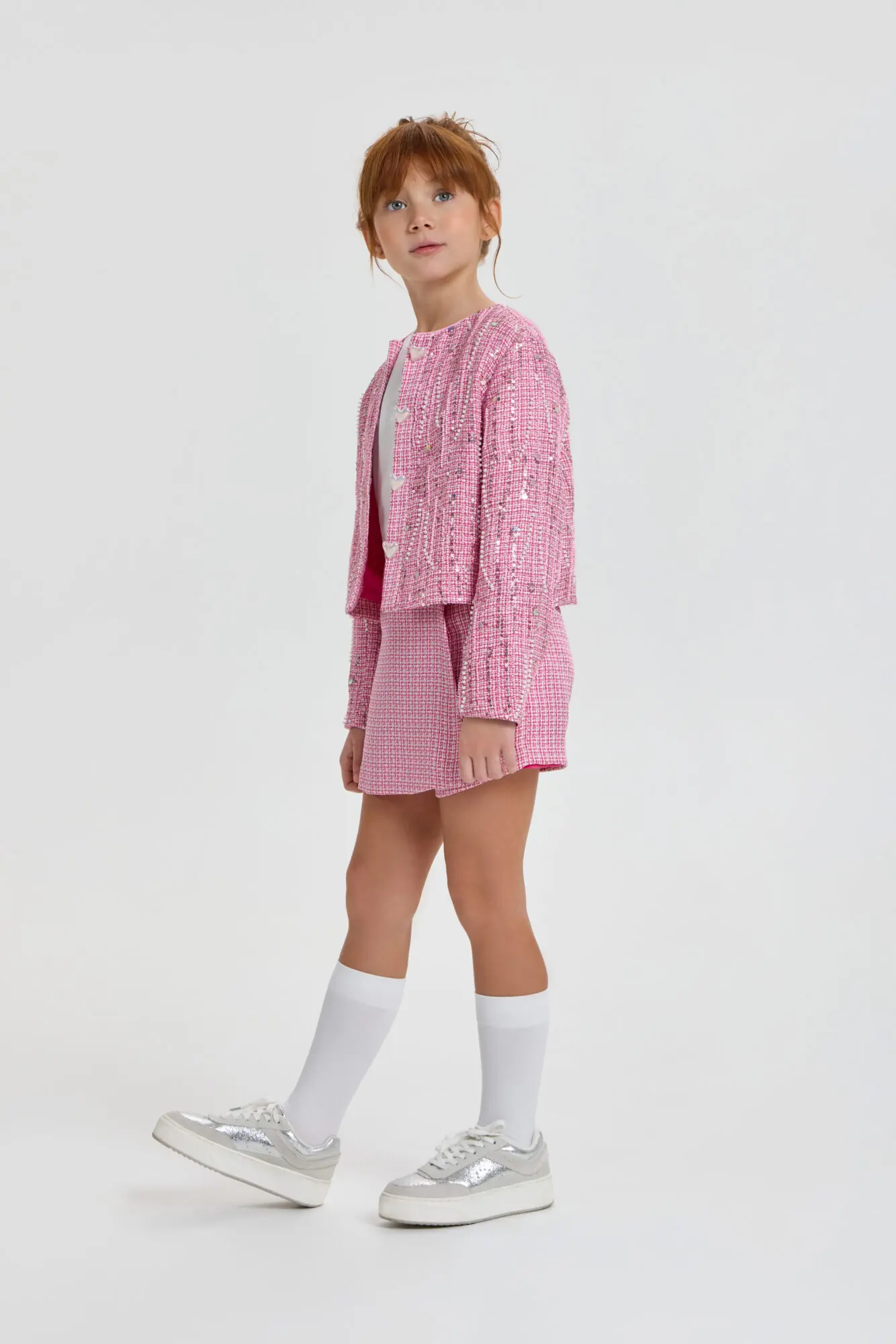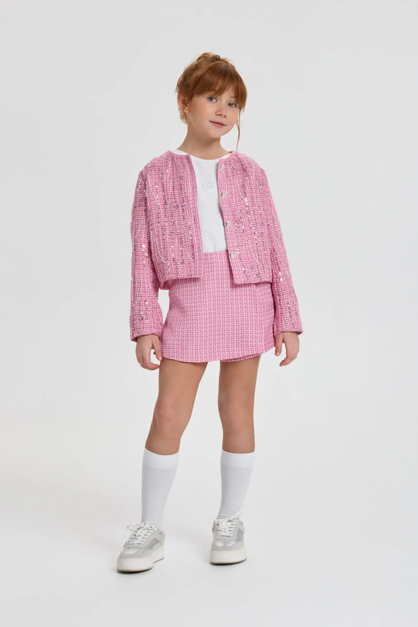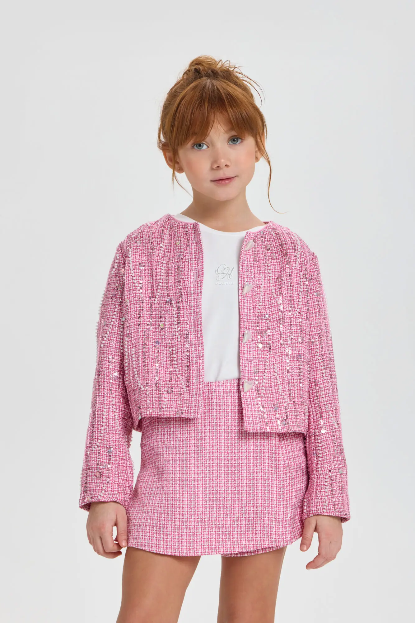 Жакет для девочки до сих пор является актуальным элементом гардероба для тех, кто любит практичные вещи. Данная модель имеет прямой крой, что обеспечивает лёгкость в сочетании ... с другими элементами одежды. Подкладка из натурального хлопка придаёт жакету дополнительный комфорт, позволяя коже дышать и создавая приятные ощущения при носке. Яркий декор в виде пайеток и страз, контрастные пуговицы, выполненные в стильном дизайне, акцентируют внимание на детали, привнося нотку оригинальности и изысканности в общий образ. Этот жакет легко вписывается в различные стили: от повседневного до более нарядного. Его можно сочетать с джинсами, юбками или платьями, создавая множество уникальных образов для разных случаев.