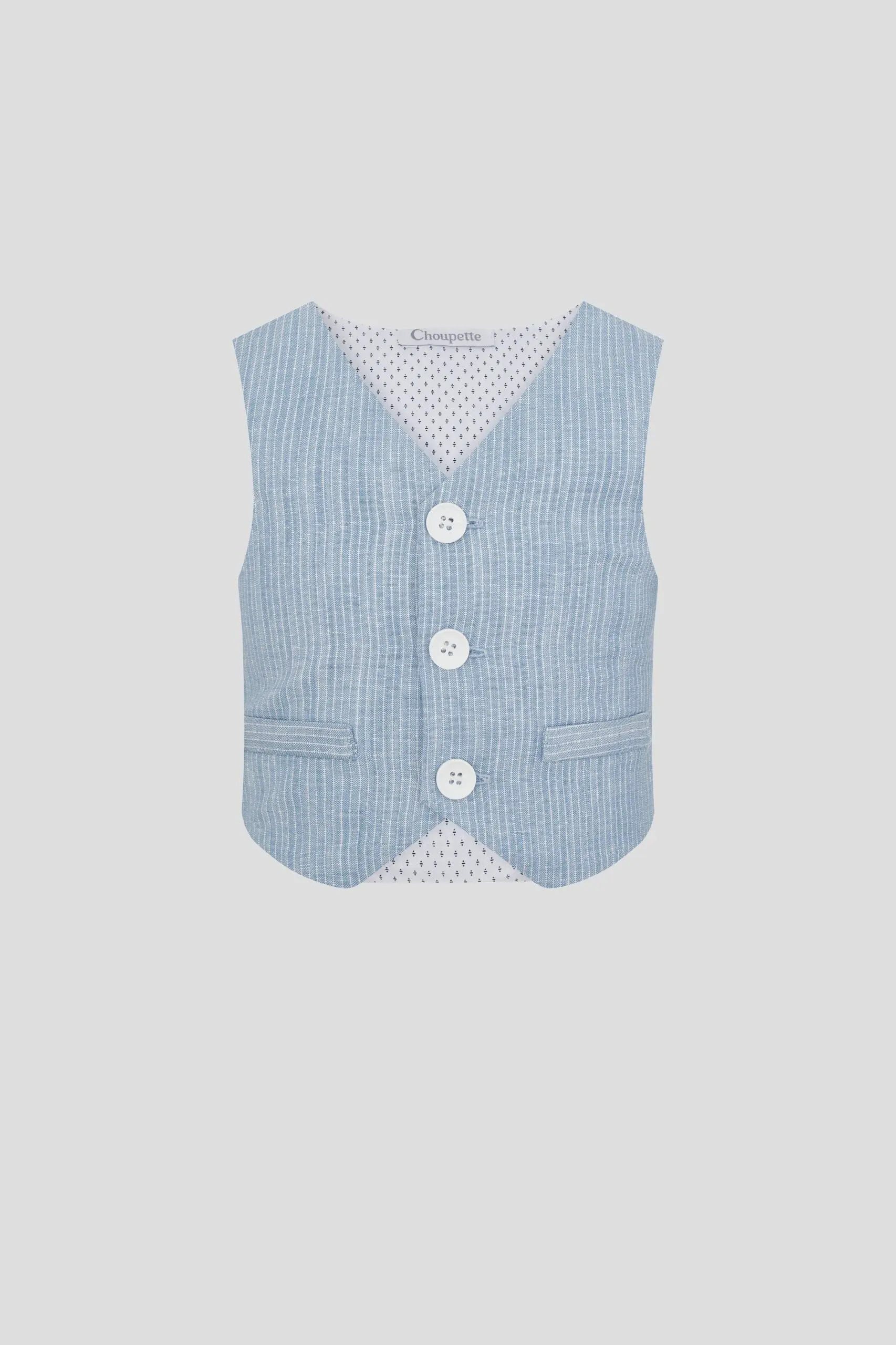 Модный жилет для мальчика изготовлен из качественной смесовой ткани на основе льна и хлопка, так что идеально подходит для активного ребенка - материал приятен к телу ... и позволяет коже дышать.