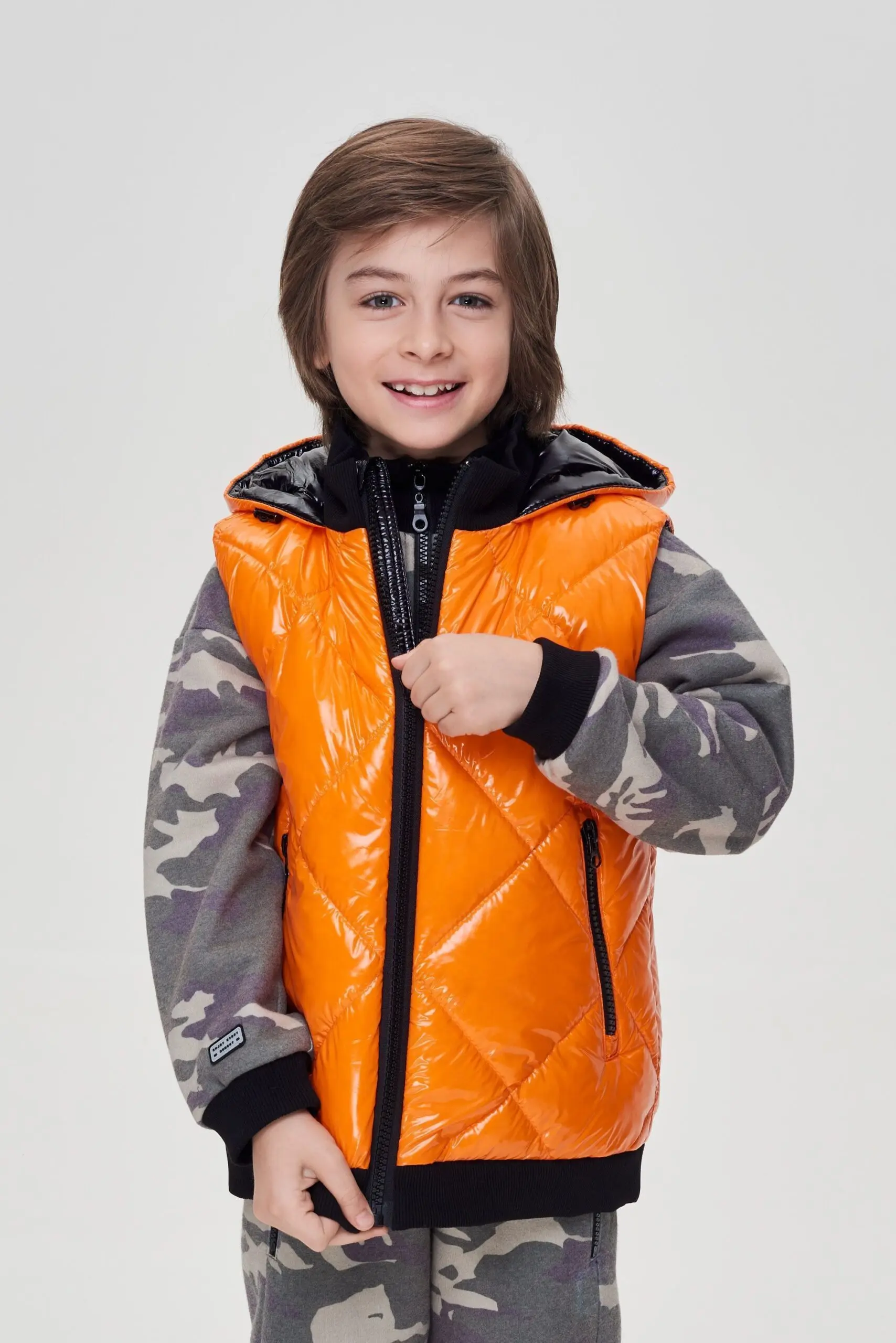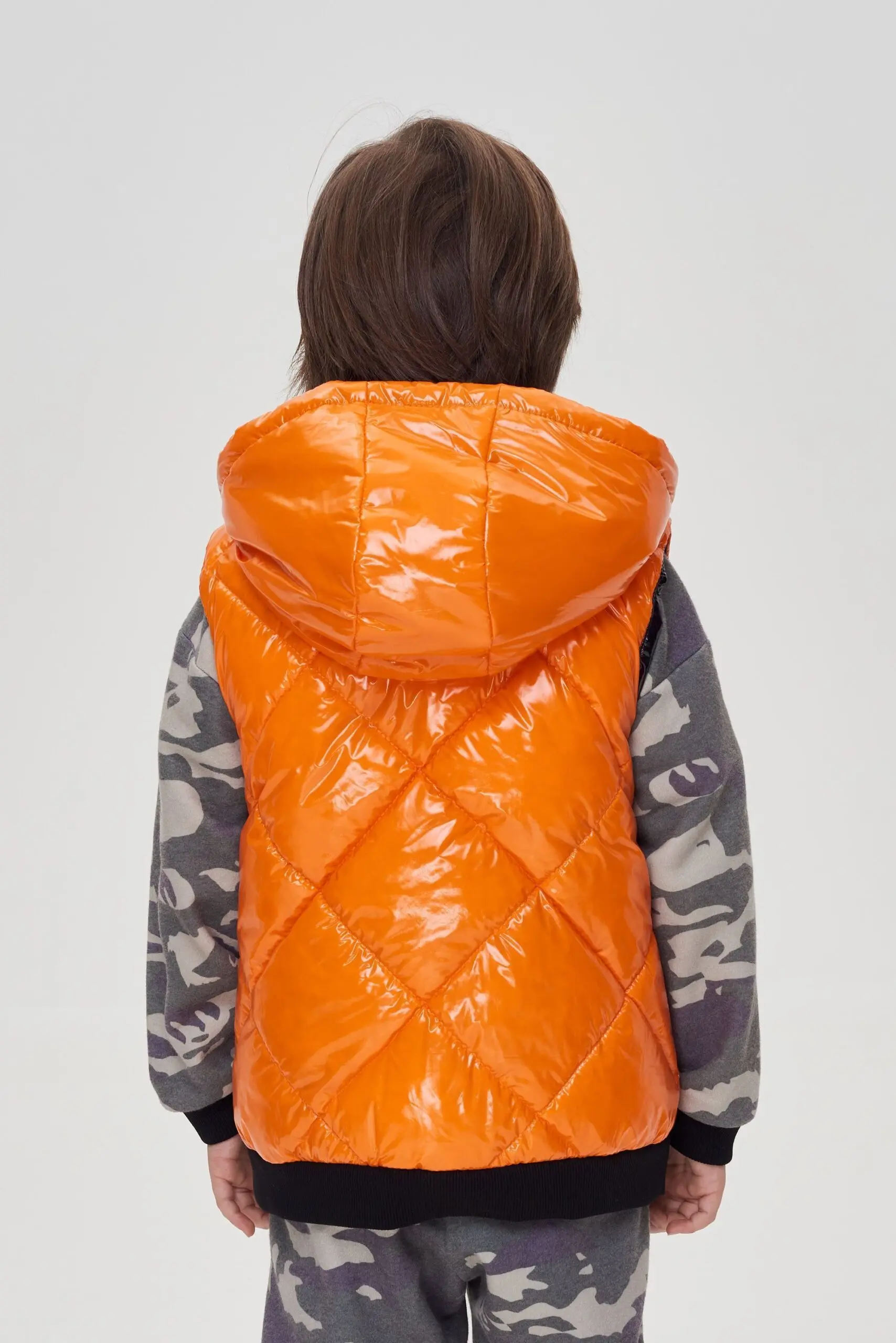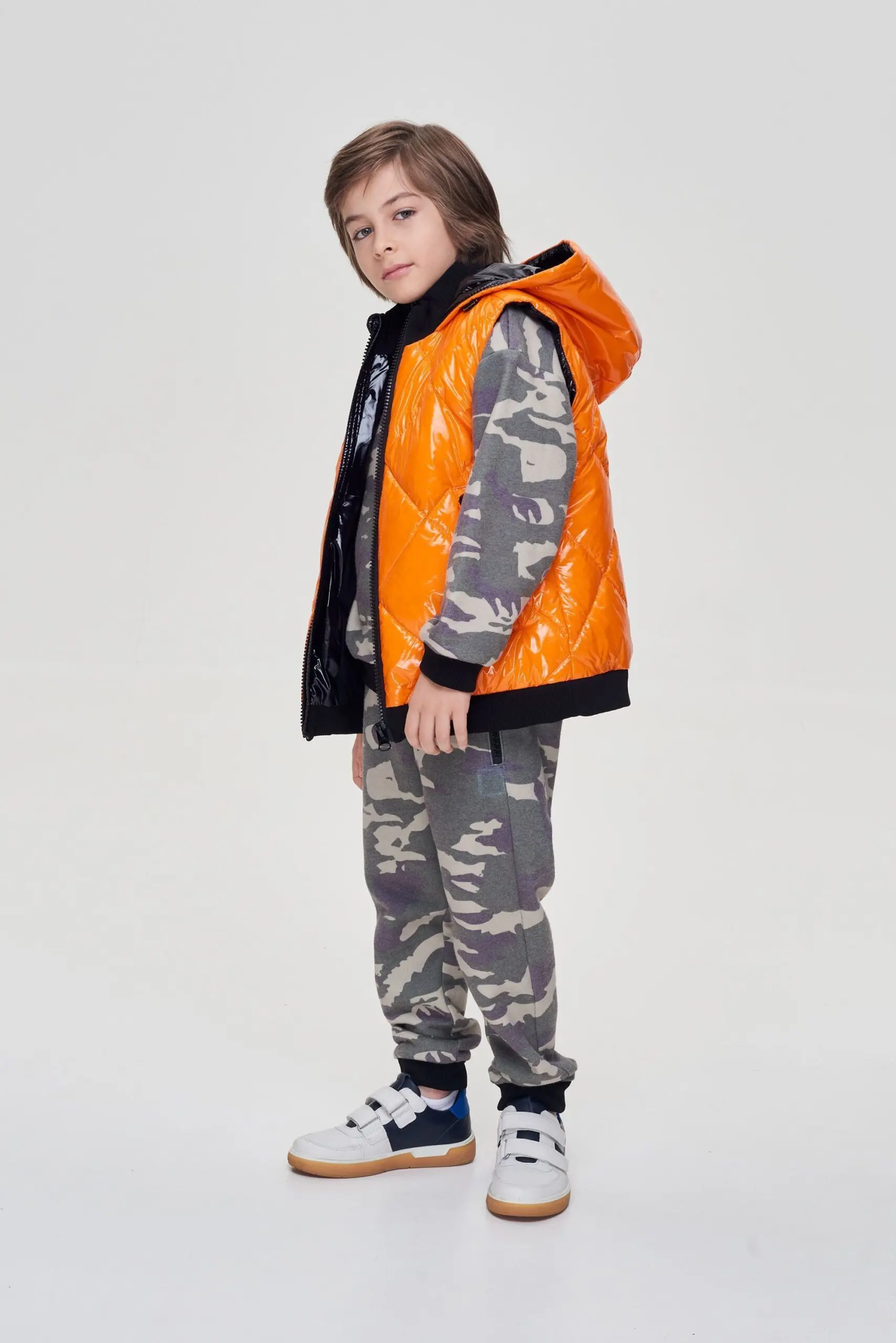 Традиционно детские наряды декорируют вышивкой, аппликациями и красочными принтами. Но многие подростки предпочитают стильные однотонные вещи. Яркий утеплённый жилет для мальчика насыщенного оттенка «каре» позволит юному ... тинейджеру выделиться среди сверстников. Оригинальная модель свободного силуэта с карманами застёгивается на молнию. Такой предмет гардероба позволит создавать нестандартные уличные луки.