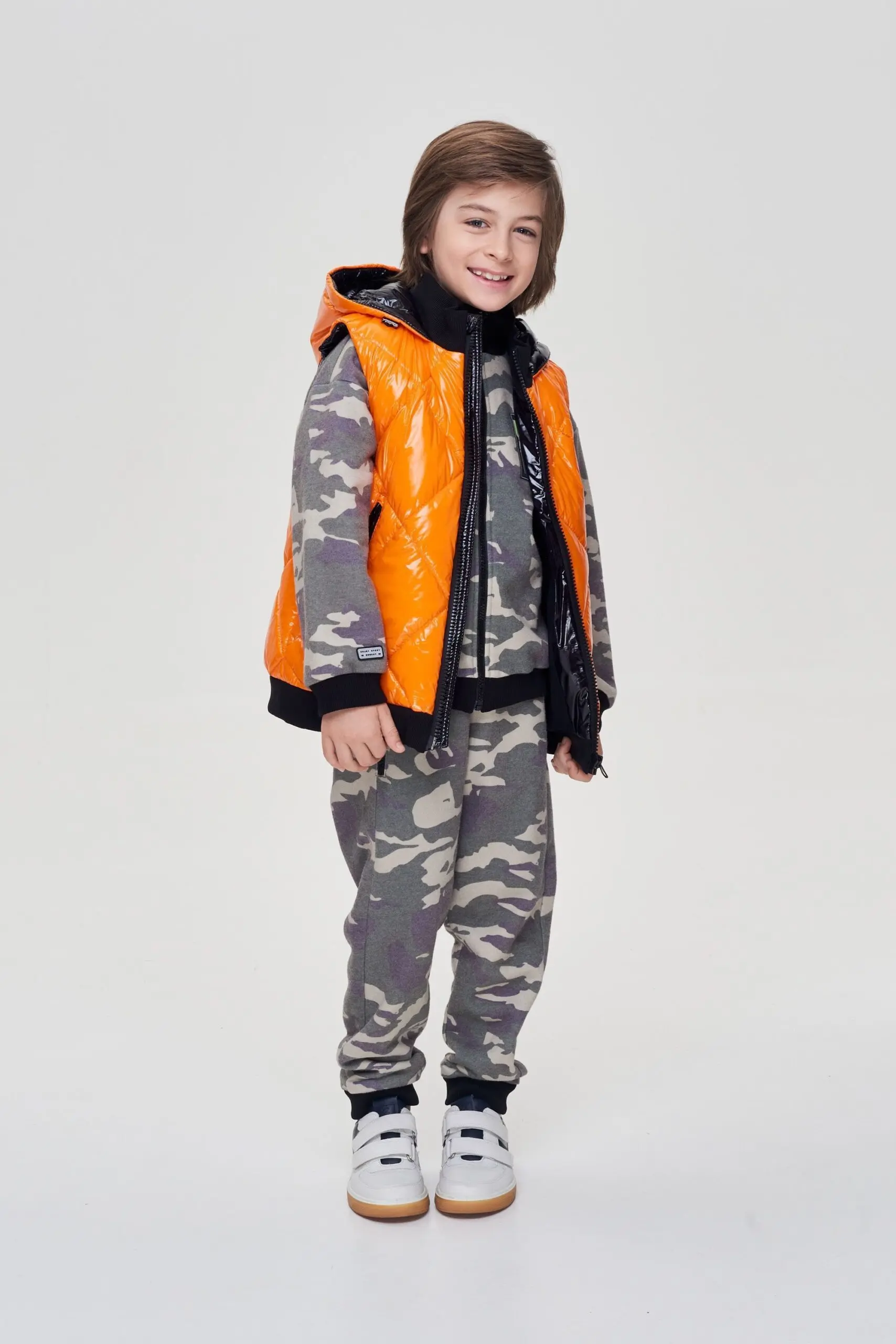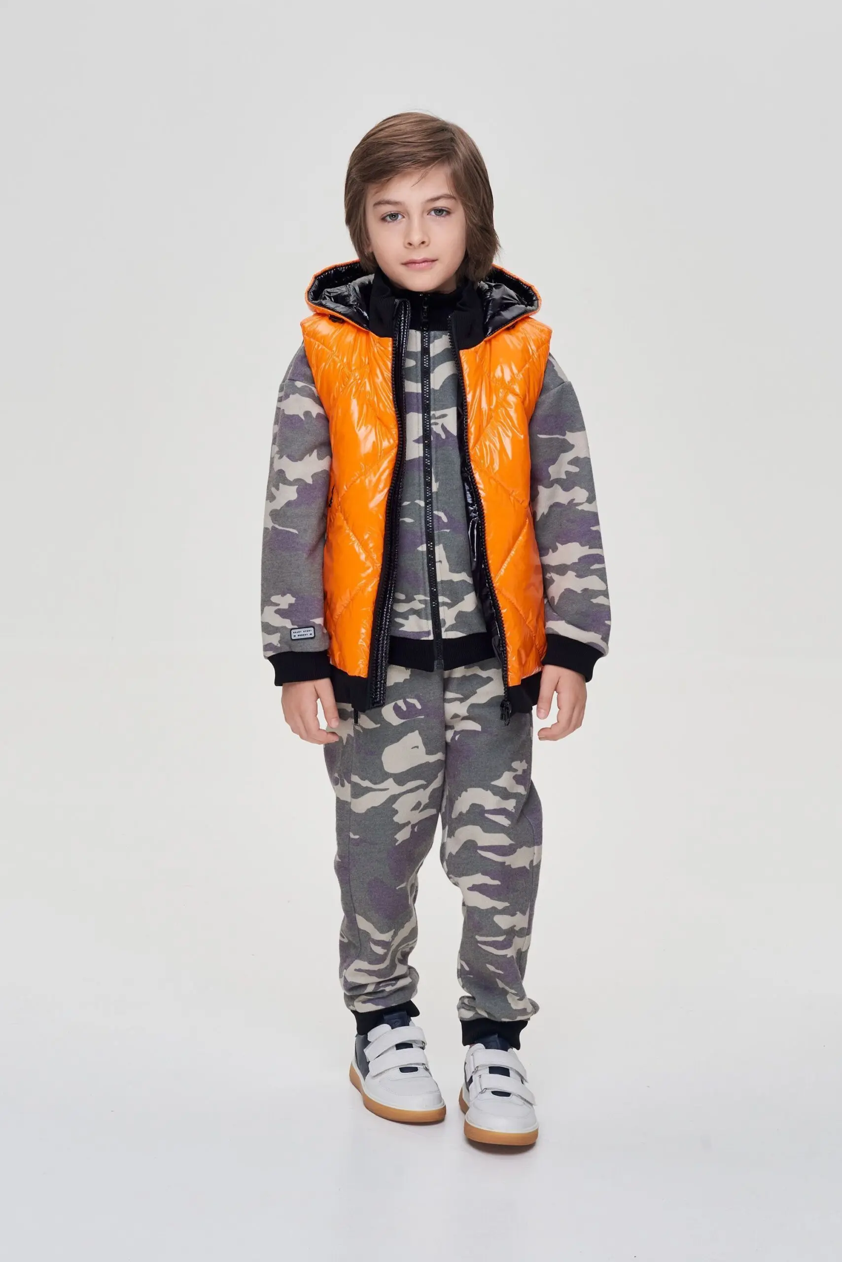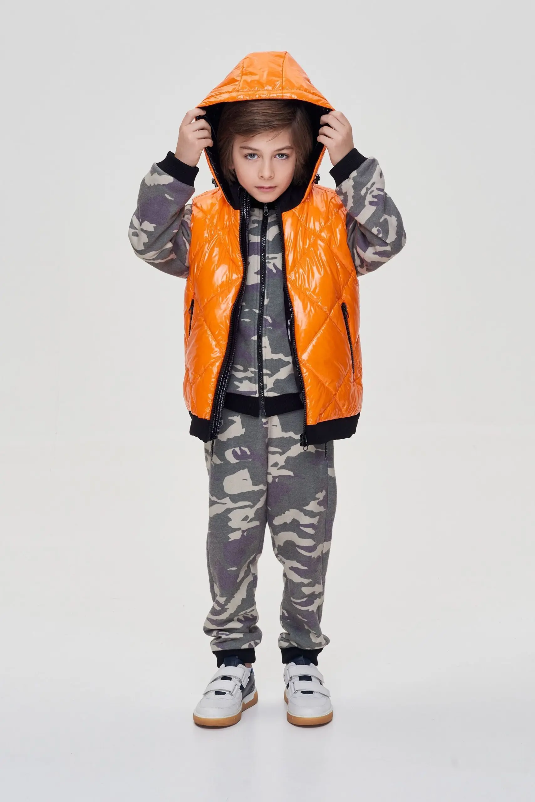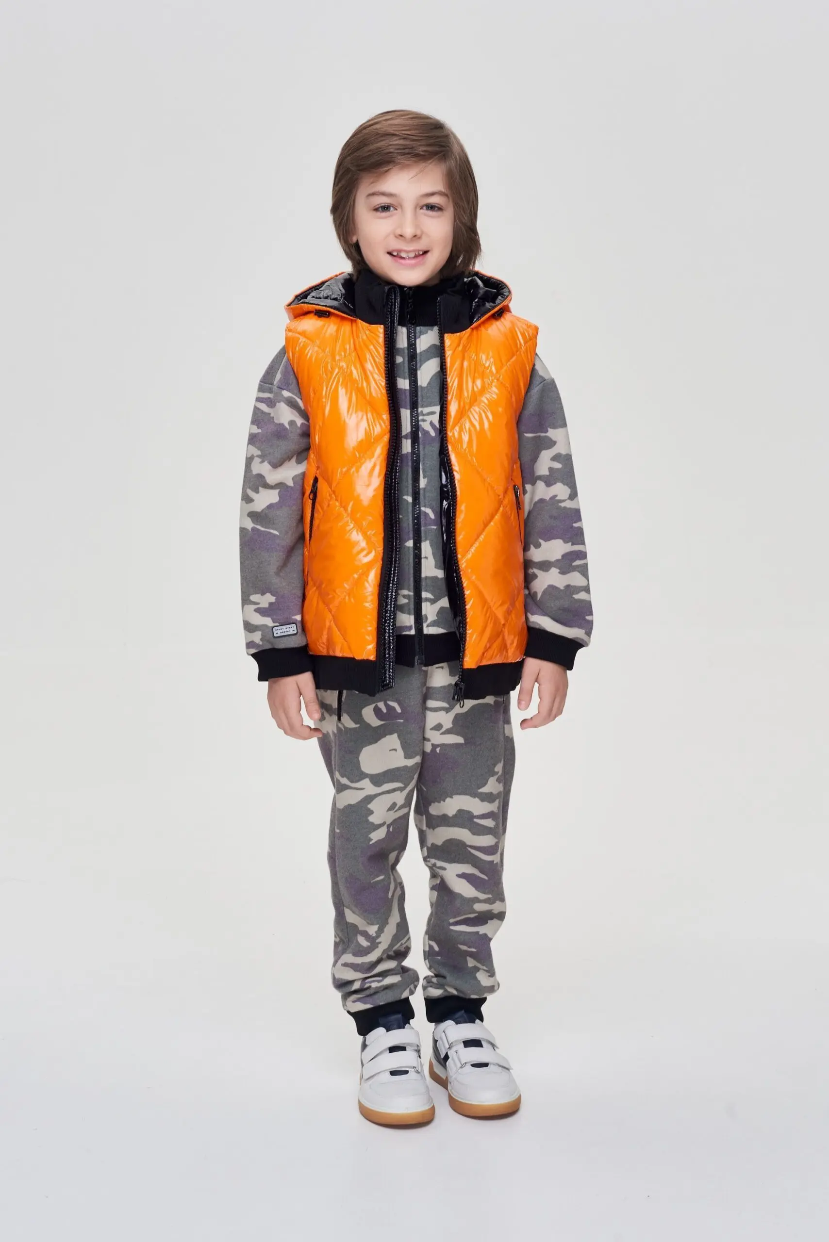 Традиционно детские наряды декорируют вышивкой, аппликациями и красочными принтами. Но многие подростки предпочитают стильные однотонные вещи. Яркий утеплённый жилет для мальчика насыщенного оттенка «каре» позволит юному ... тинейджеру выделиться среди сверстников. Оригинальная модель свободного силуэта с карманами застёгивается на молнию. Такой предмет гардероба позволит создавать нестандартные уличные луки.