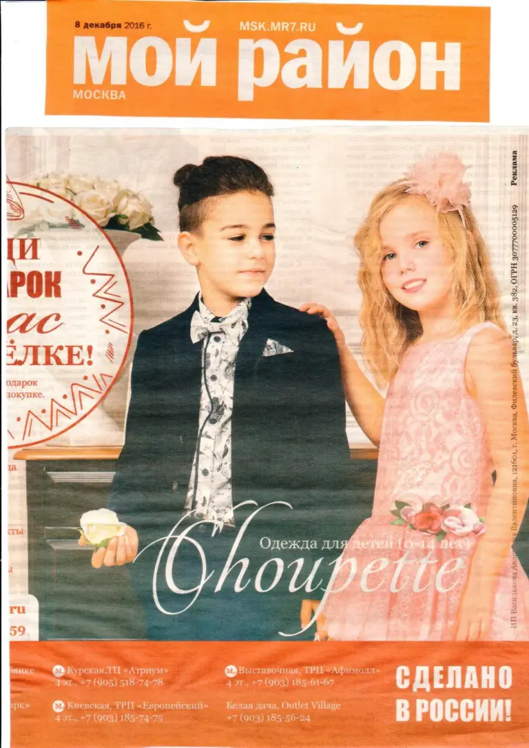 Choupette в газете «Мой район»! Модная дизайнерская одежда для детей от 0 до 14 лет.